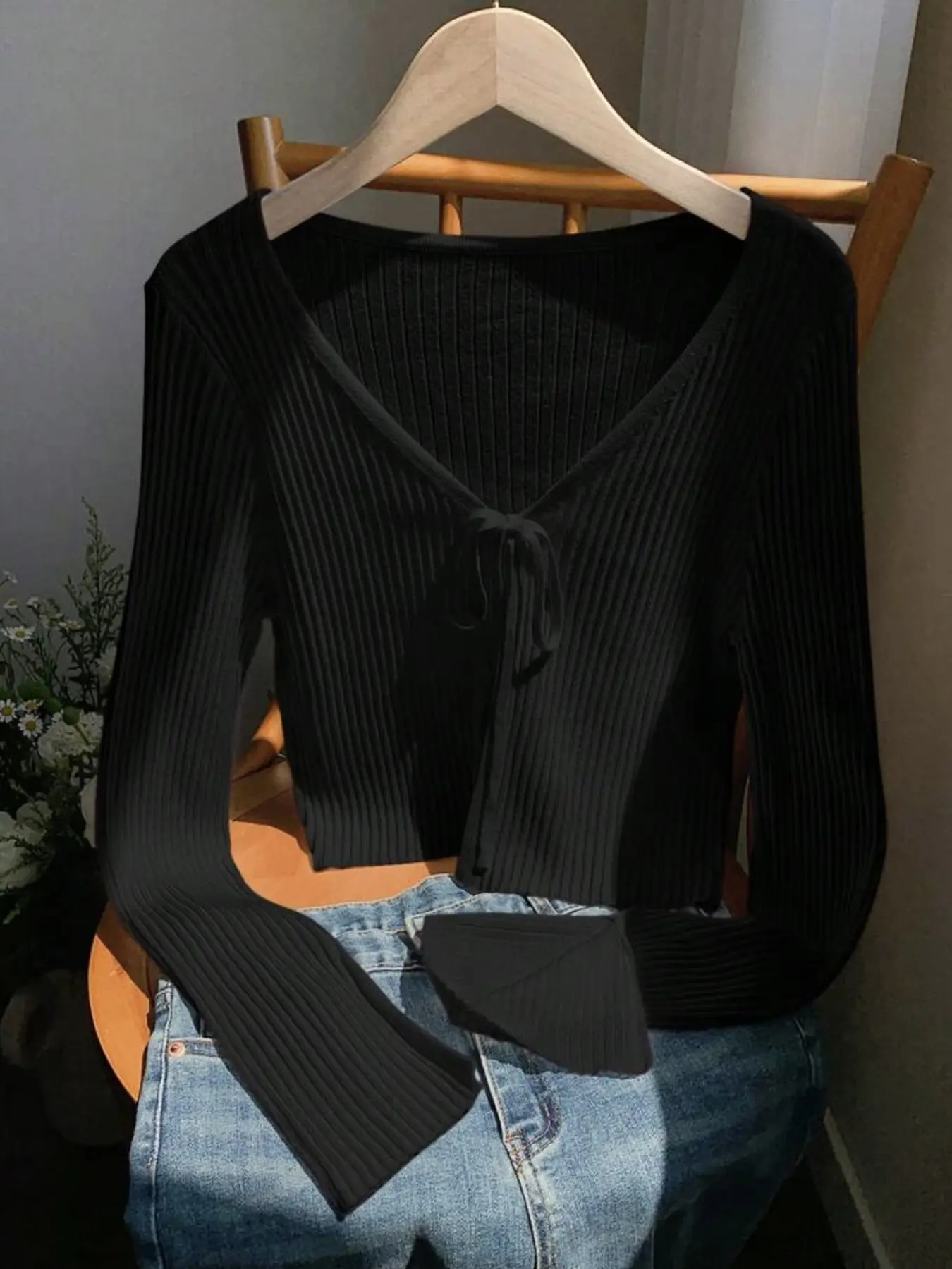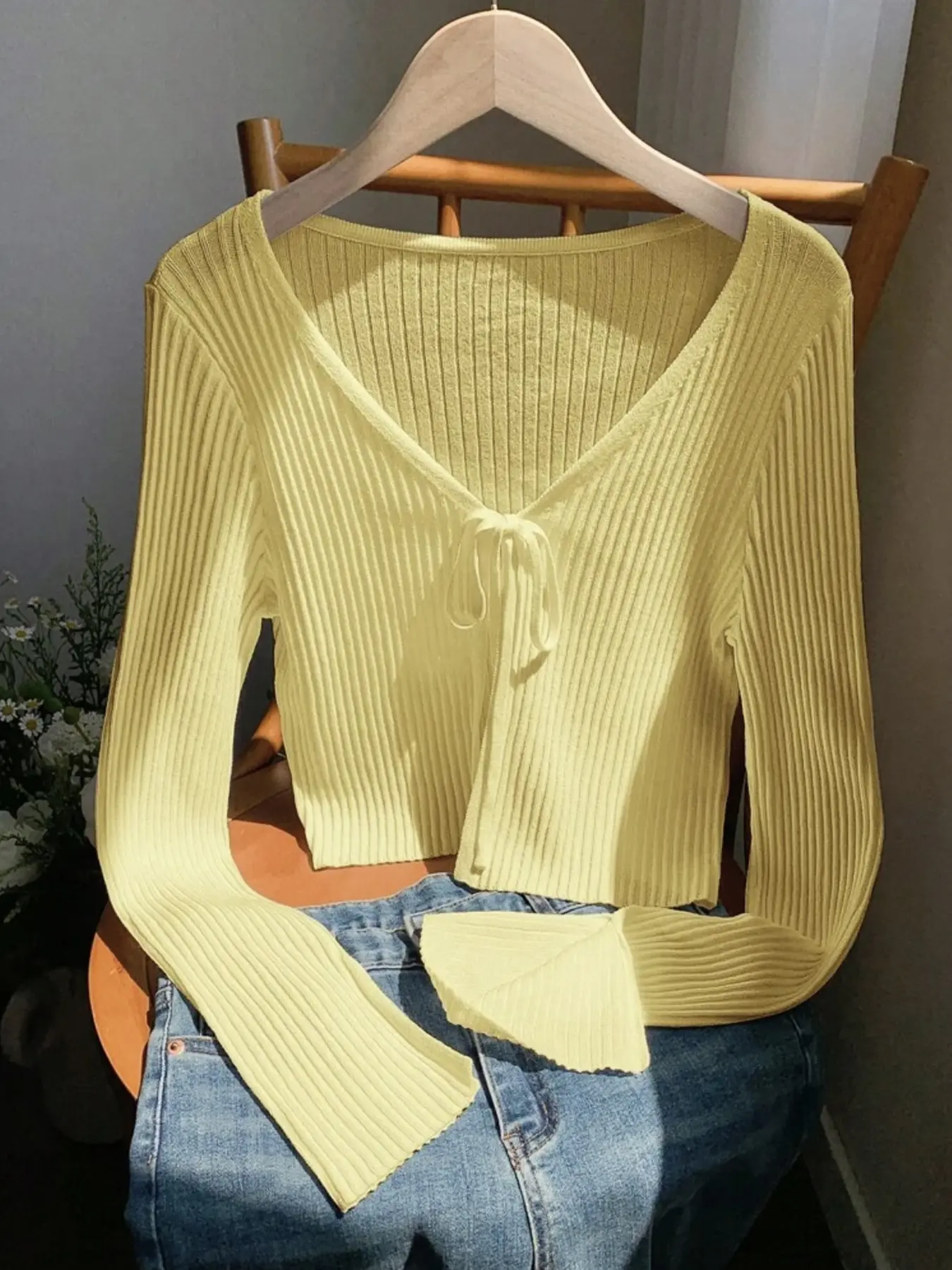 5. Women's Casual Spring Summer Knit Sweater Cardigan with Tie Front, Loose-Fitting Plain Open Front Jacket for Chic Style and Versatile Wear