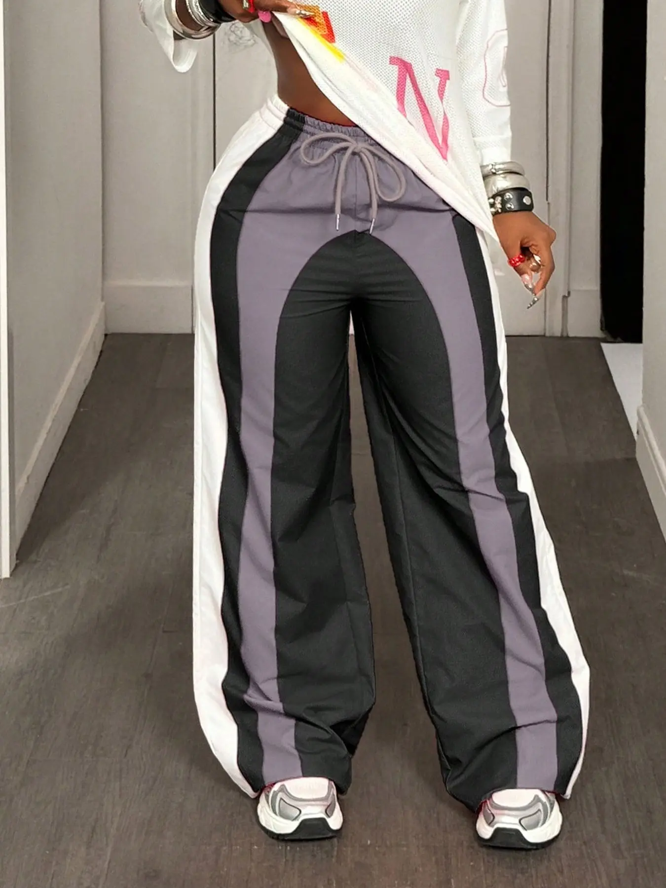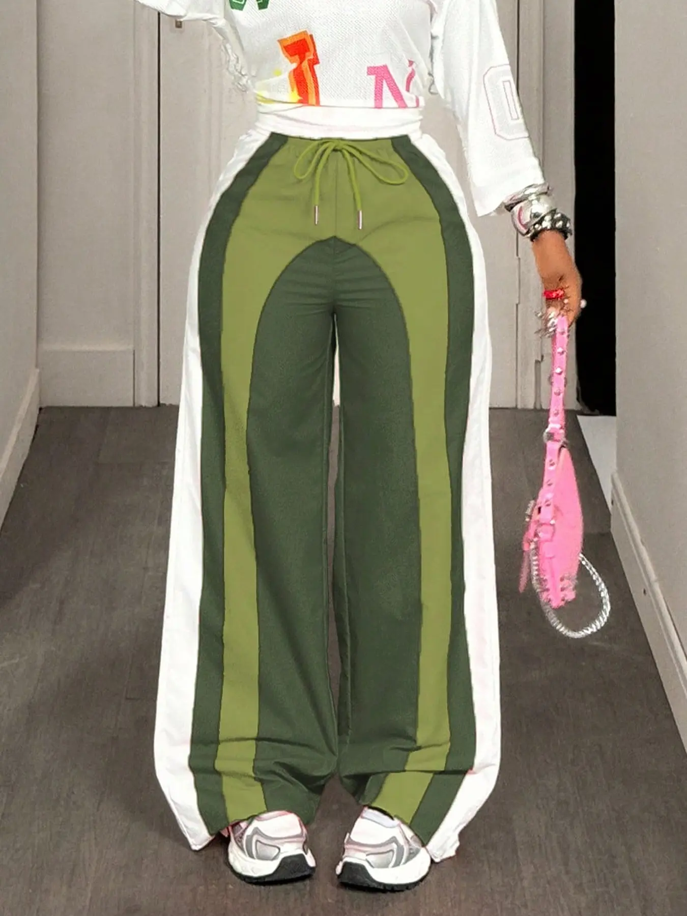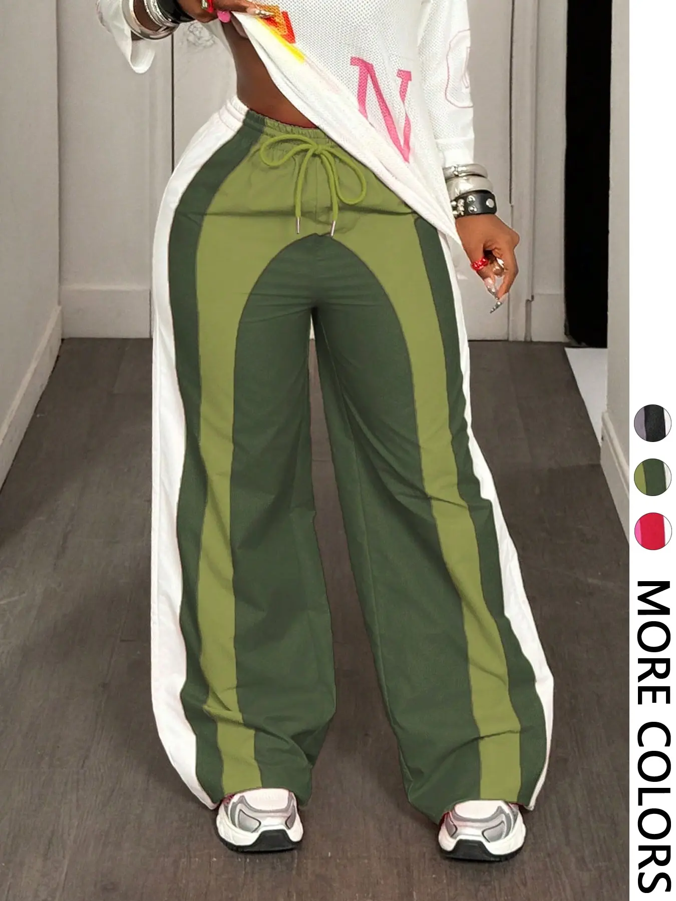 🔥🔥🔥 Woven with breathable 95% polyester and stretchy elastane, these crop-length beauties move with you through workdays and weekend adventures. The classic stripe design transitions seamlessly from summer strolls to chilly autumn outings, while cold-wash care ensures they stay sharp season after season. 🛍️🛍️🛍️ #streetwear #colorblock #trackpants #womensfashion #tiktokshop
