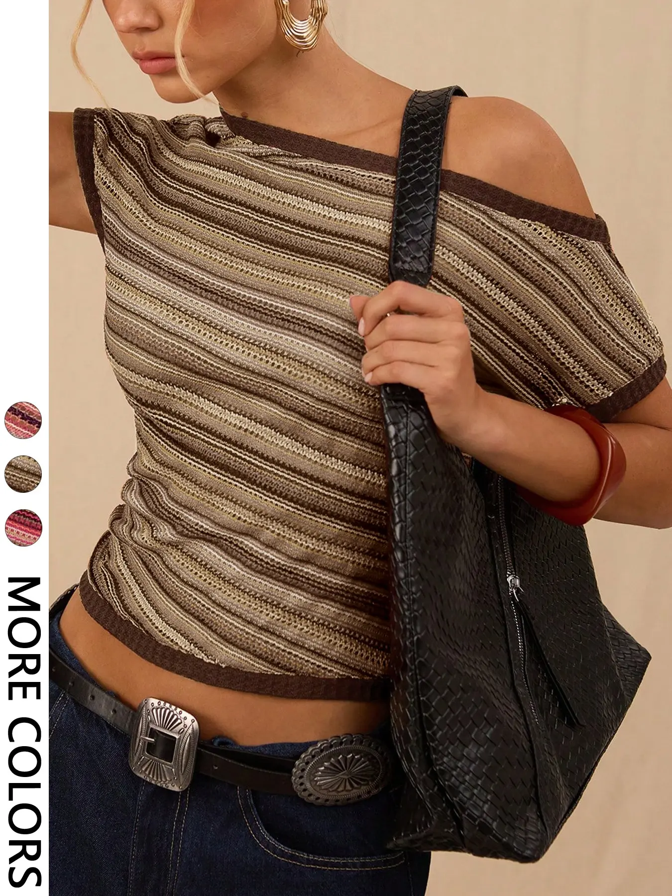#WomensStripedTop #CasualChicStyle #OffShoulderTop #EverydayWardrobe #GenXFashion This women’s casual striped tee is one of those easy pieces you can style two ways — wear it classic and relaxed or pull it slightly off the shoulder for a more effortless, asymmetrical vibe. Soft, flattering, and simple enough to pair with denim, shorts, or layered under a jacket, it’s the kind of top that makes getting dressed feel easy.