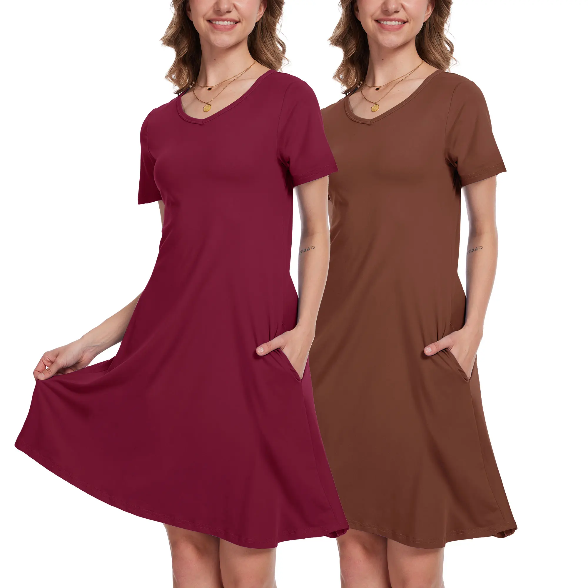 SHOWITTY 2-Pack Women's Casual T-Shirt Dresses with Pockets, Plus Size Clothing Short Sleeves, Summer Wear