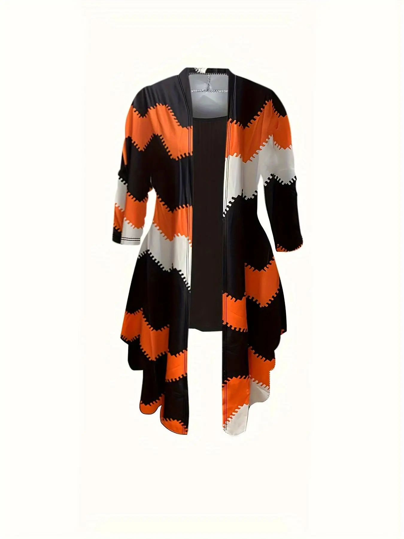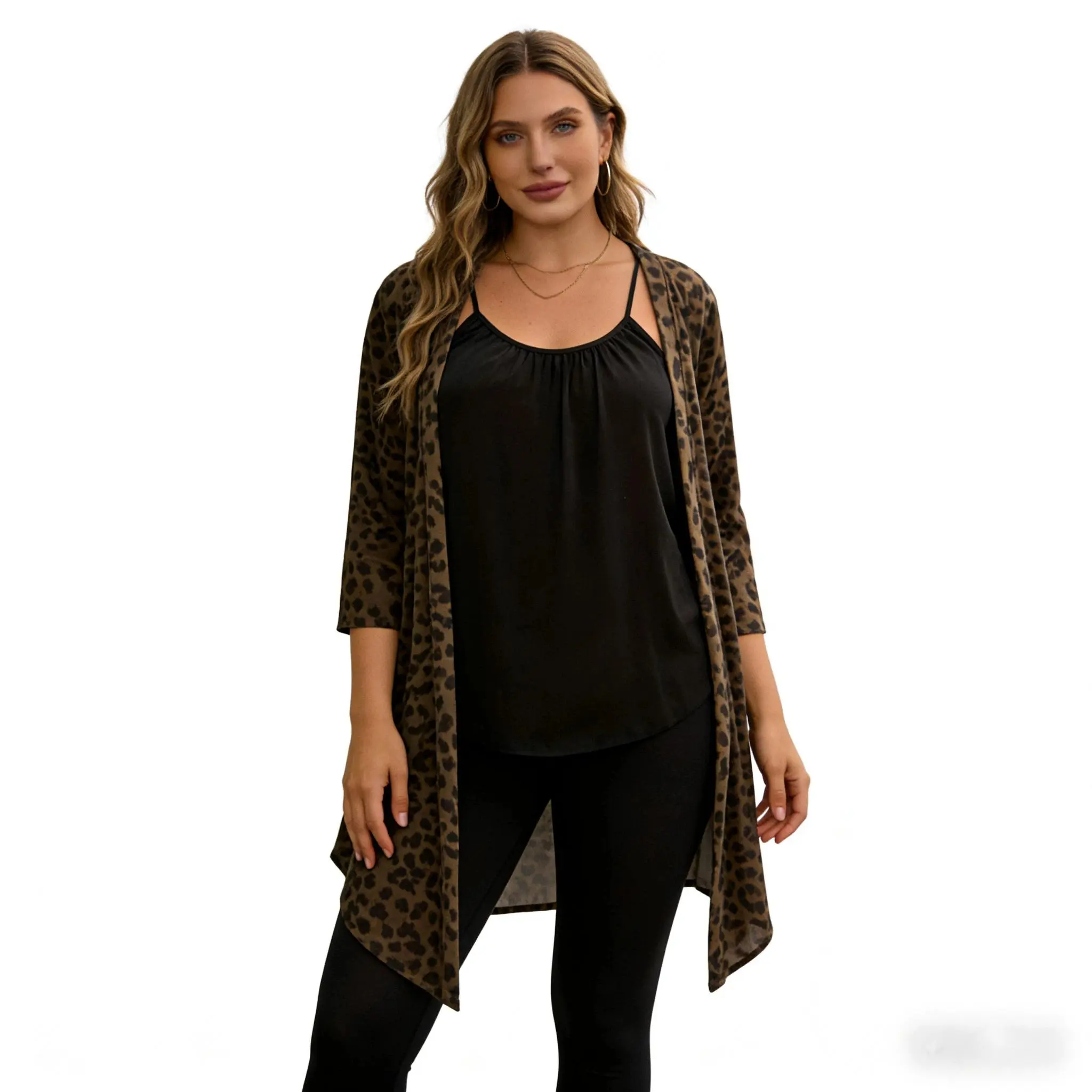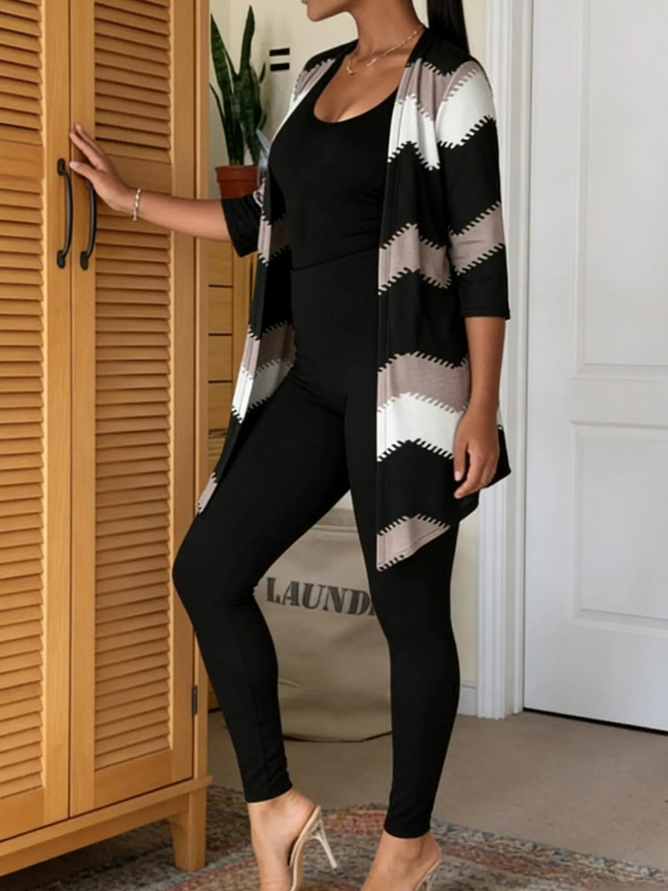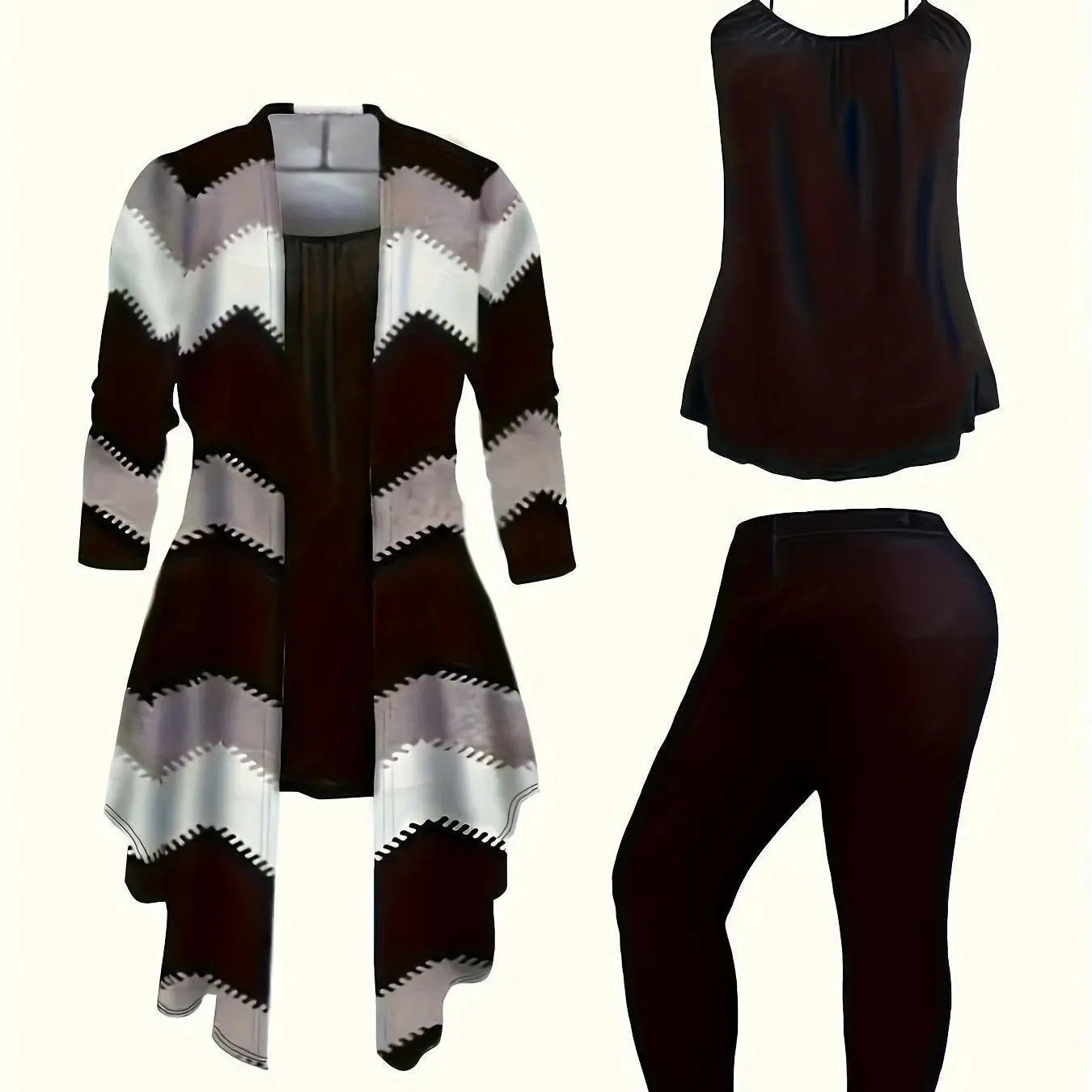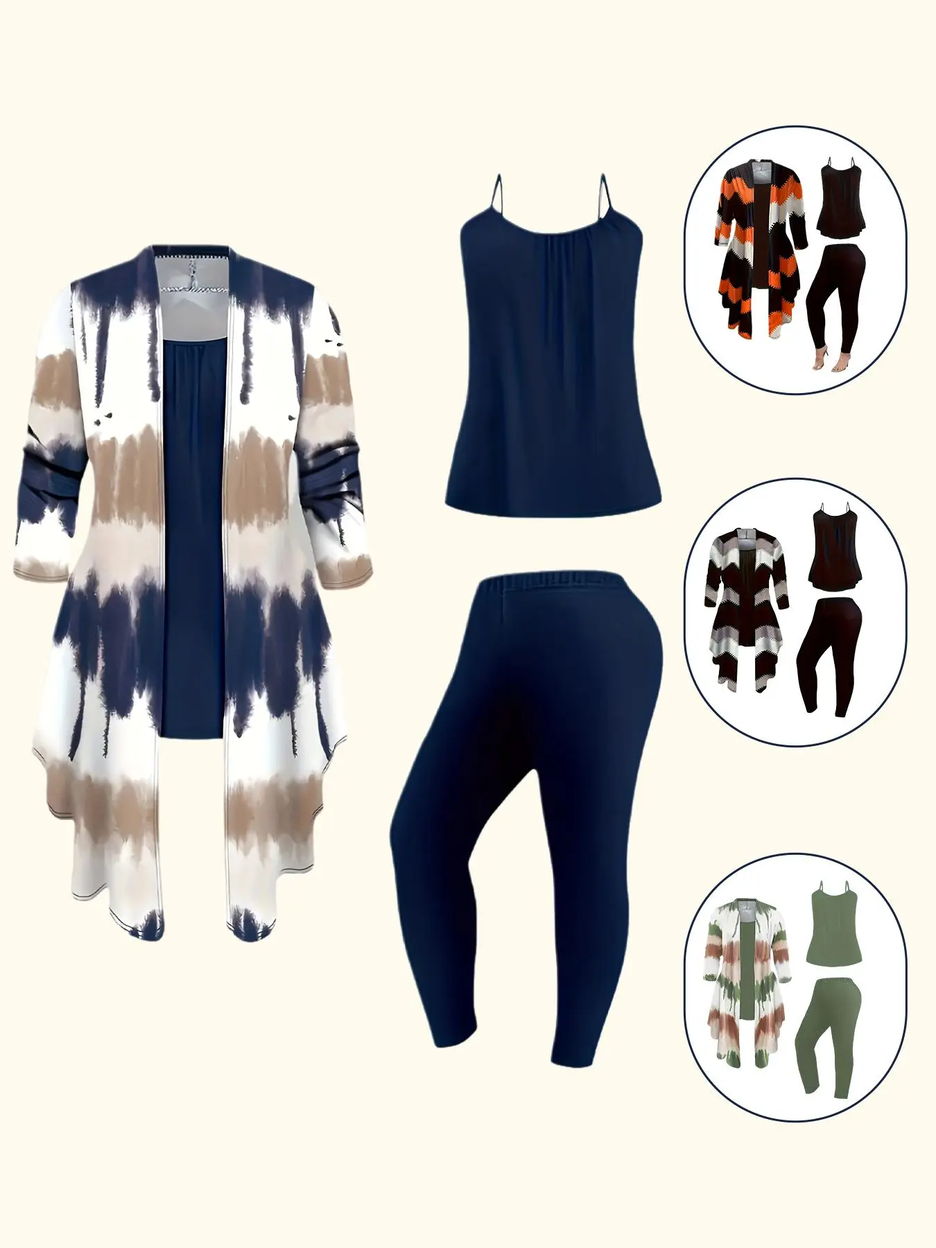 This Women's Casual Three-piece Set includes a block open front top, a solid color cami top, and matching pants. Perfect for effortless style, this outfit is ideal for casual outings. The combination of the top, cami, and pants makes it a versatile choice for women's summer clothing. Stay stylish and comfortable all season long.