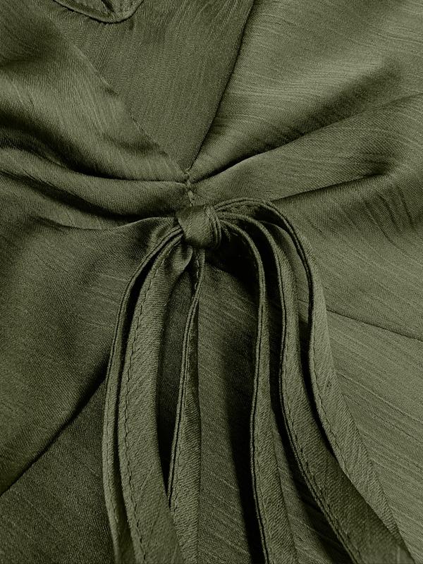 Women's solid color casual top, V-neck with drawstring detailing, stylish and comfortable for daily wear & outdoor activities. #TikTokShopFallDealsForYou #spotlightfinds #fyp #tiktok shop #fall fashion