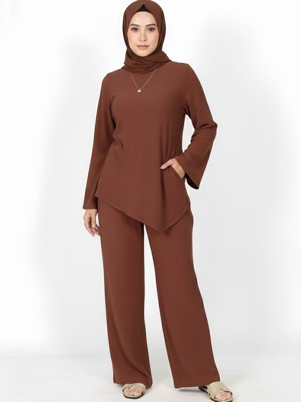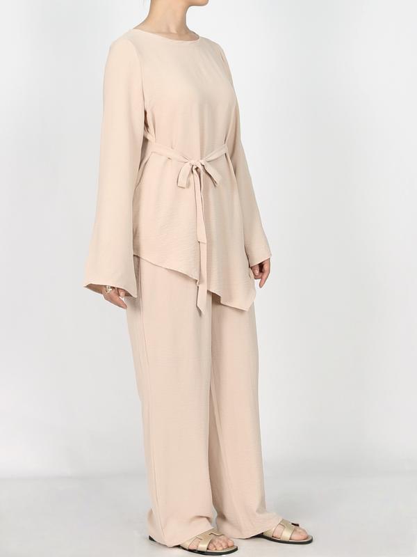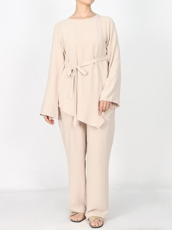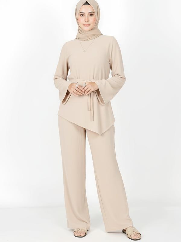 レディース カジュアル 2ピースセット モデスト ファッション ポケット付き ベルト 不規則ヘムデザイン 快適なデイリーウェア #saree #ミニワンピース #ladiesfashion #dresses #レディーススーツ #ニットワンピース #womenswear #shakiracollection #ロングワンピース #メンズロングパンツ