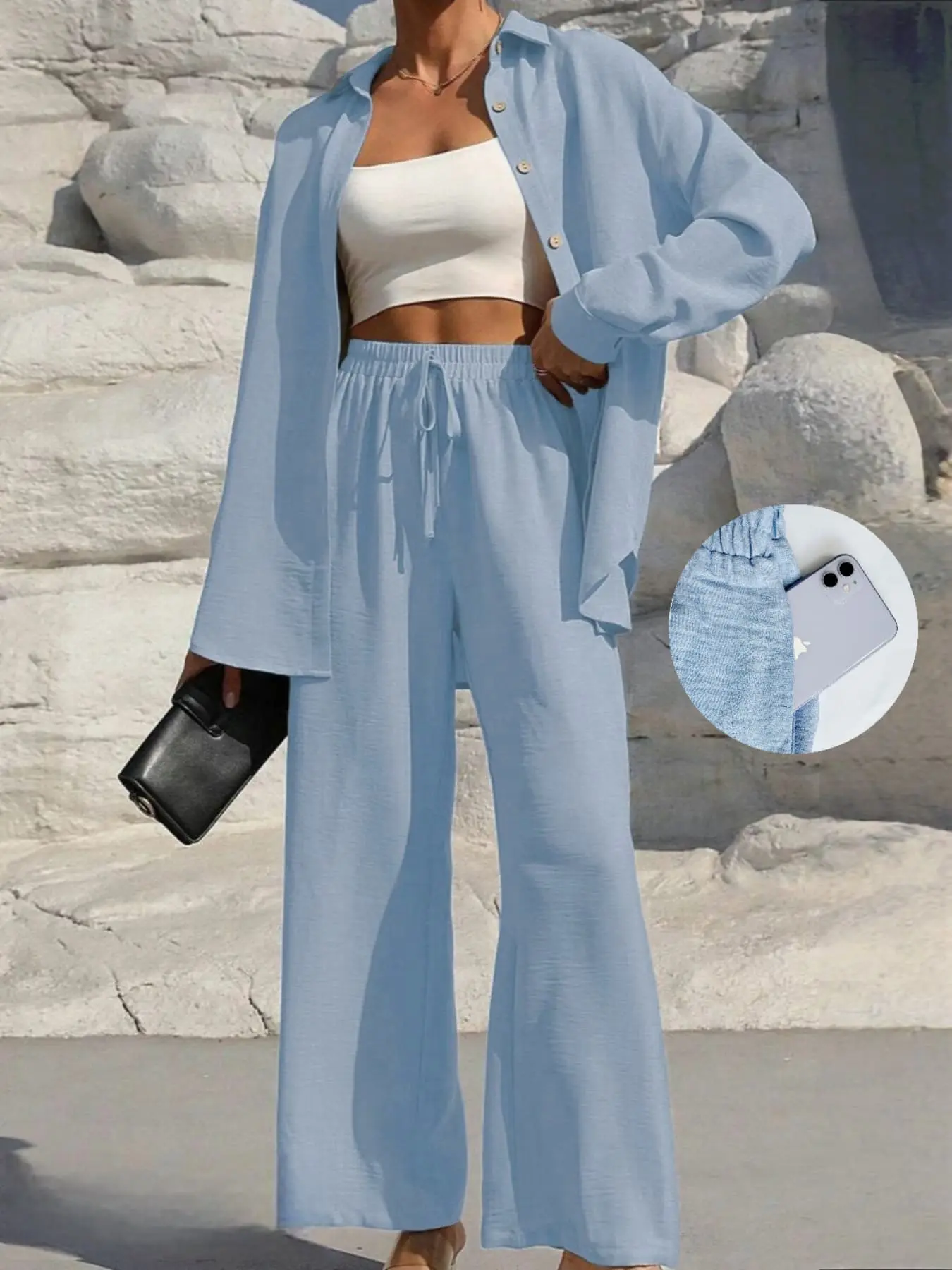 #twopieceset  #shirt #longsleeve  #pants #pockets #longpants #widelegpants  #TikTokMadeMeBuyIt  #spotlightfinds