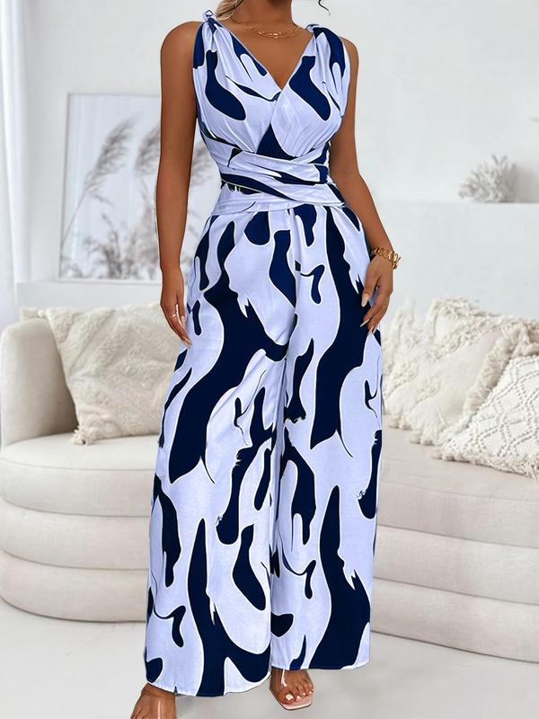 Women's Jumpsuit, Casual V Neck Sleeveless Jumpsuit for Summer, Fashion Lady Women's Clothing for Beach Holiday, Womenswear, Clothe, High Waist Jumpsuit