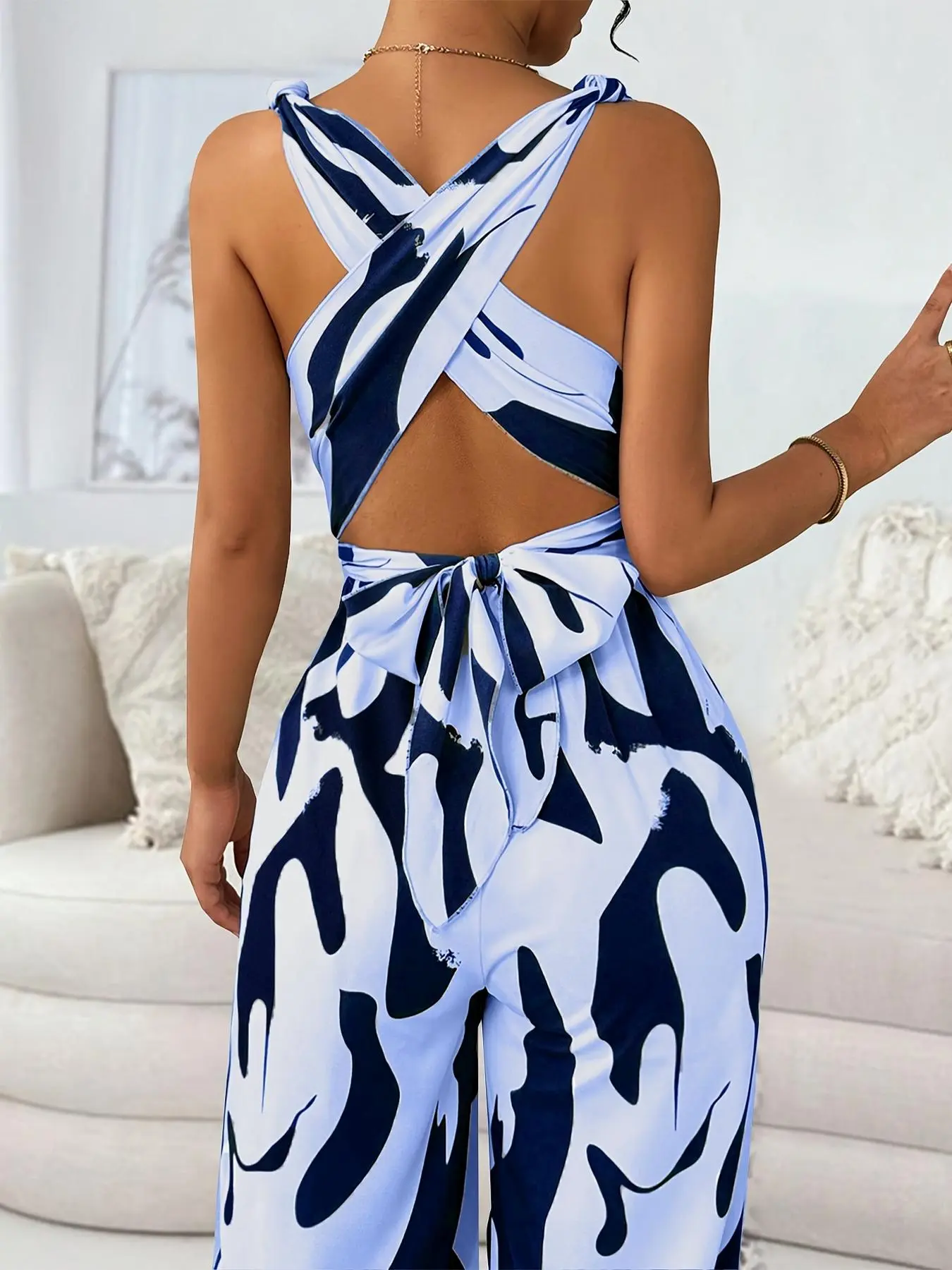 Women's Jumpsuit, Casual V Neck Sleeveless Tie Waist Jumpsuit for Summer, Fashion Lady Women's Clothing for Beach Holiday, Womenswear, Clothe, High Waist Jumpsuit, Casual Jumpsuits