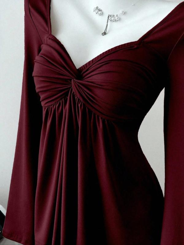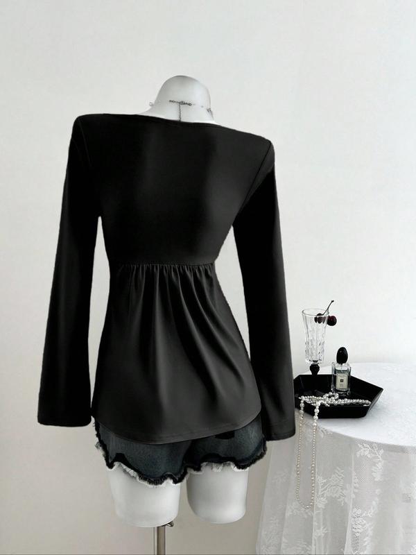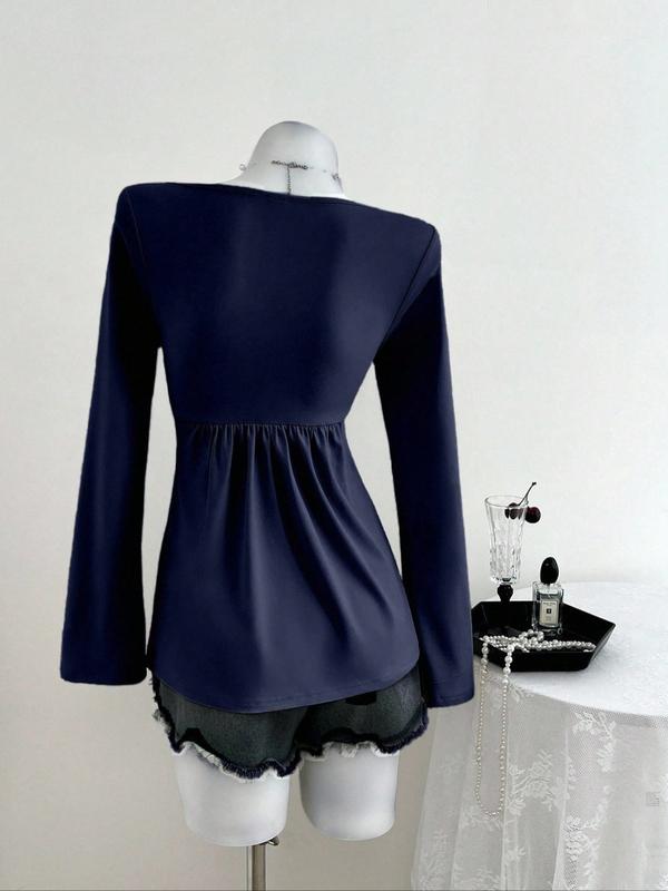 Casual V-neck long sleeve tee✨ Front knotted design, versatile for daily & office!#WomensVNeckTee#TikTokShopCyberMonday#spotlightfinds#tiktokshopcreatorpicks#tiktokshopstockup