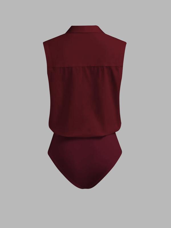 Women's Casual Loose V-Neck Sleeveless Shirt Jumpsuit, Elegant Woven Fabric, Slim Fit, Perfect for Daily Wear