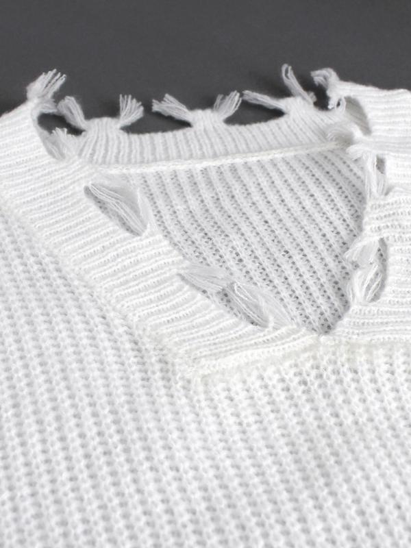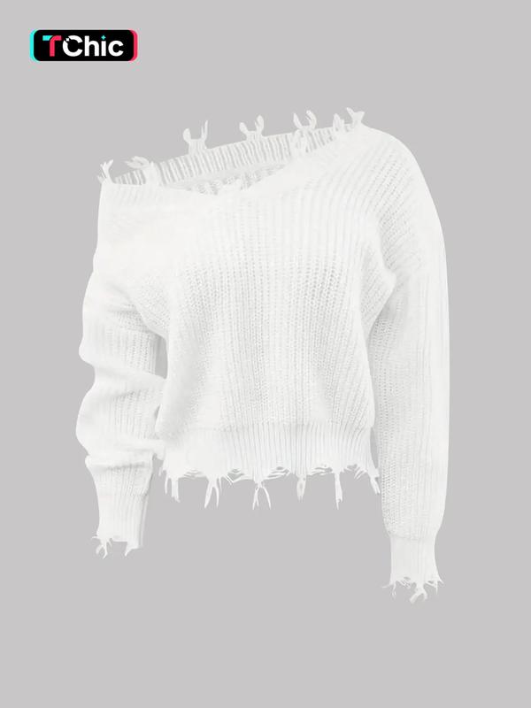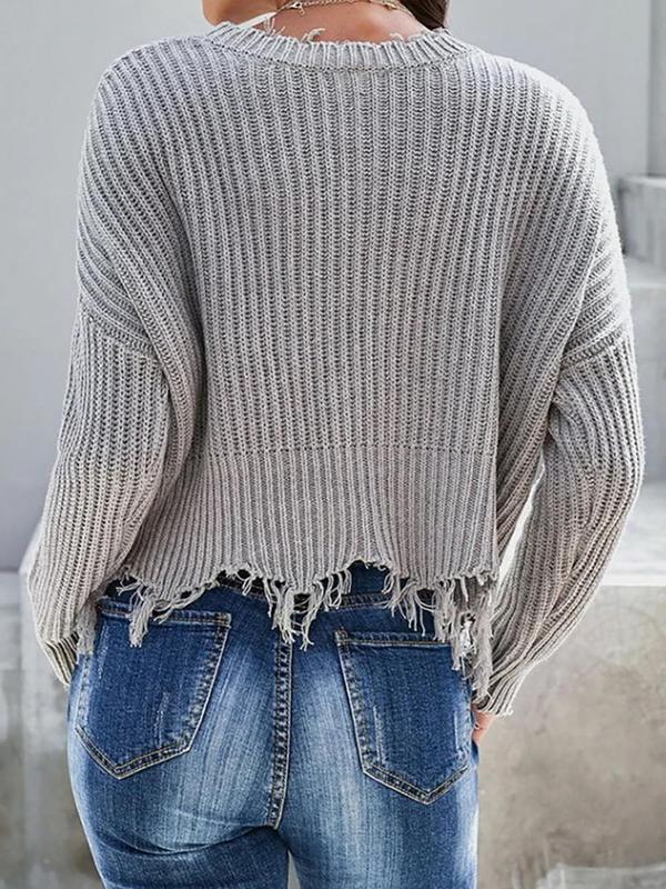 Women's Plain Drop Shoulder Sweater, Casual V Neck Long Sleeve Jumper for Fall, Women's Knitwear for Daily Wear