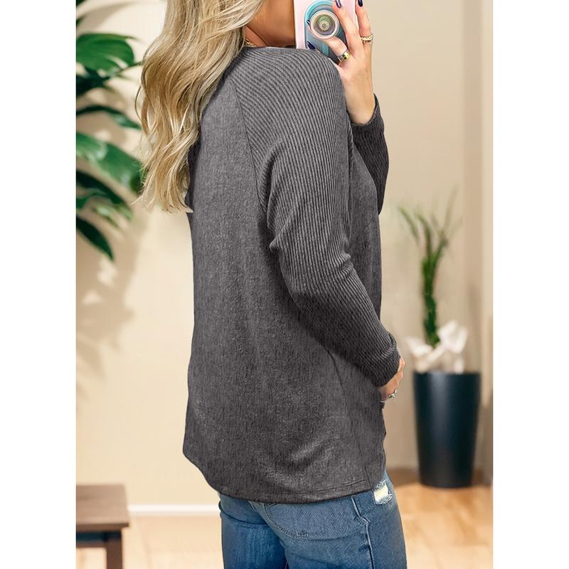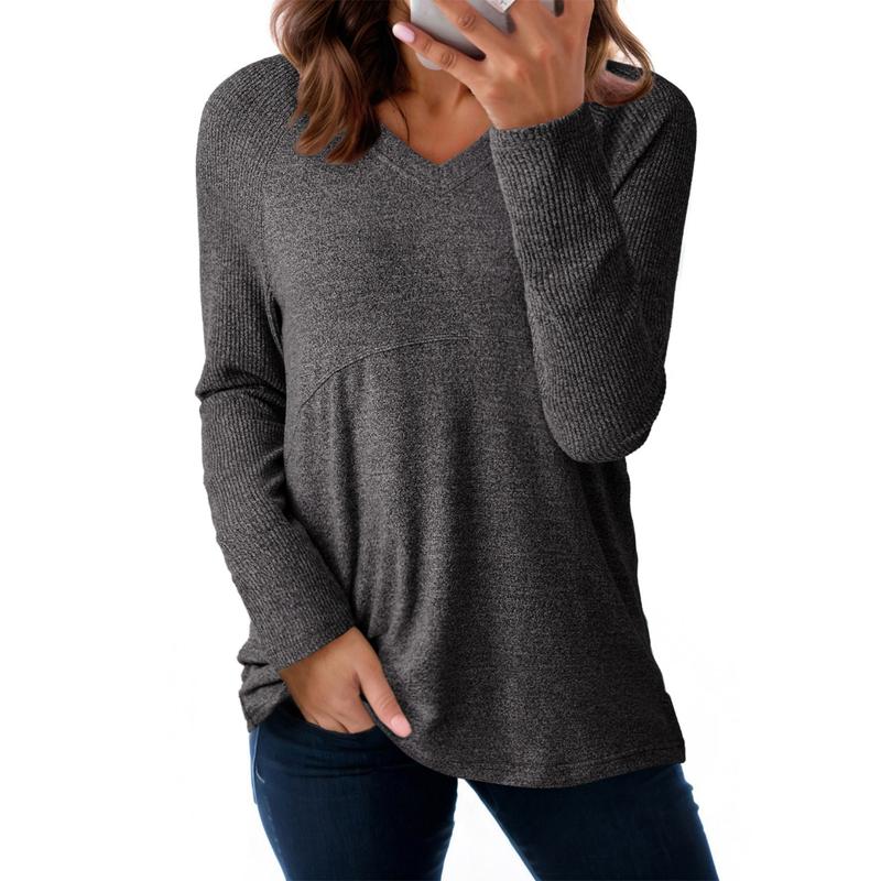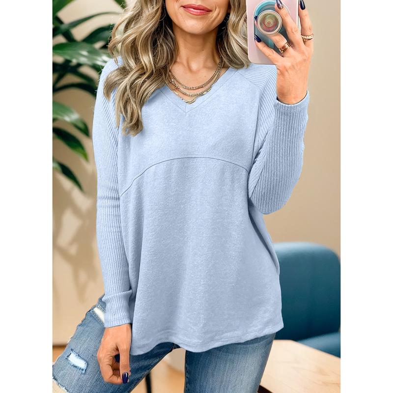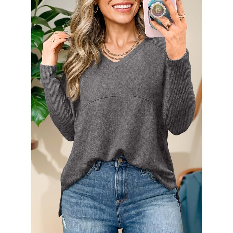 ·Feature: Long Sleeve Shirts, Cozy Knit Top, Ribbed Sleeves, Solid Color, Loose Fit, Relaxed Fit, Basic Tunic Tops, V Neck, Ribbed Knit Tops, Womens Fall Fashion 2025 Shirts, Casual Chic Style.