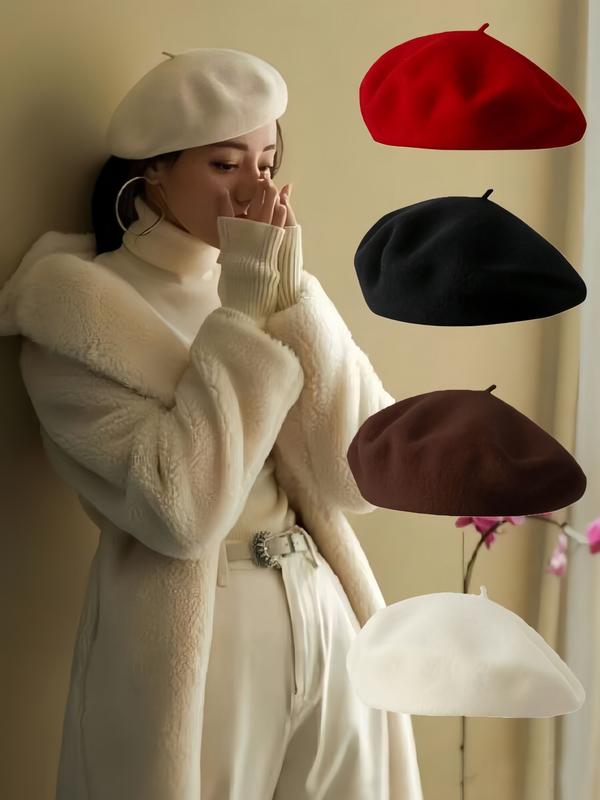 Mod Women's Casual Wool Beret Hat, Fitted Hat, Simple Elegant Fashion Accessory, Perfect for Vacation & School, Trendy Fall Winter Wear