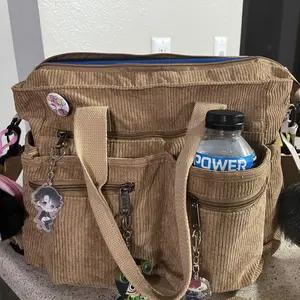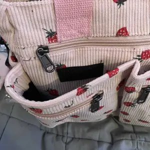 Cute bag with nice amount of pockets. Zipper is sewn on incorrectly making it so it won’t zip up. The teeth don’t align making the main zipper useless but whatever. Pay for what you get! It also has a strong smell at first but I think it will go away once it’s been aired out.