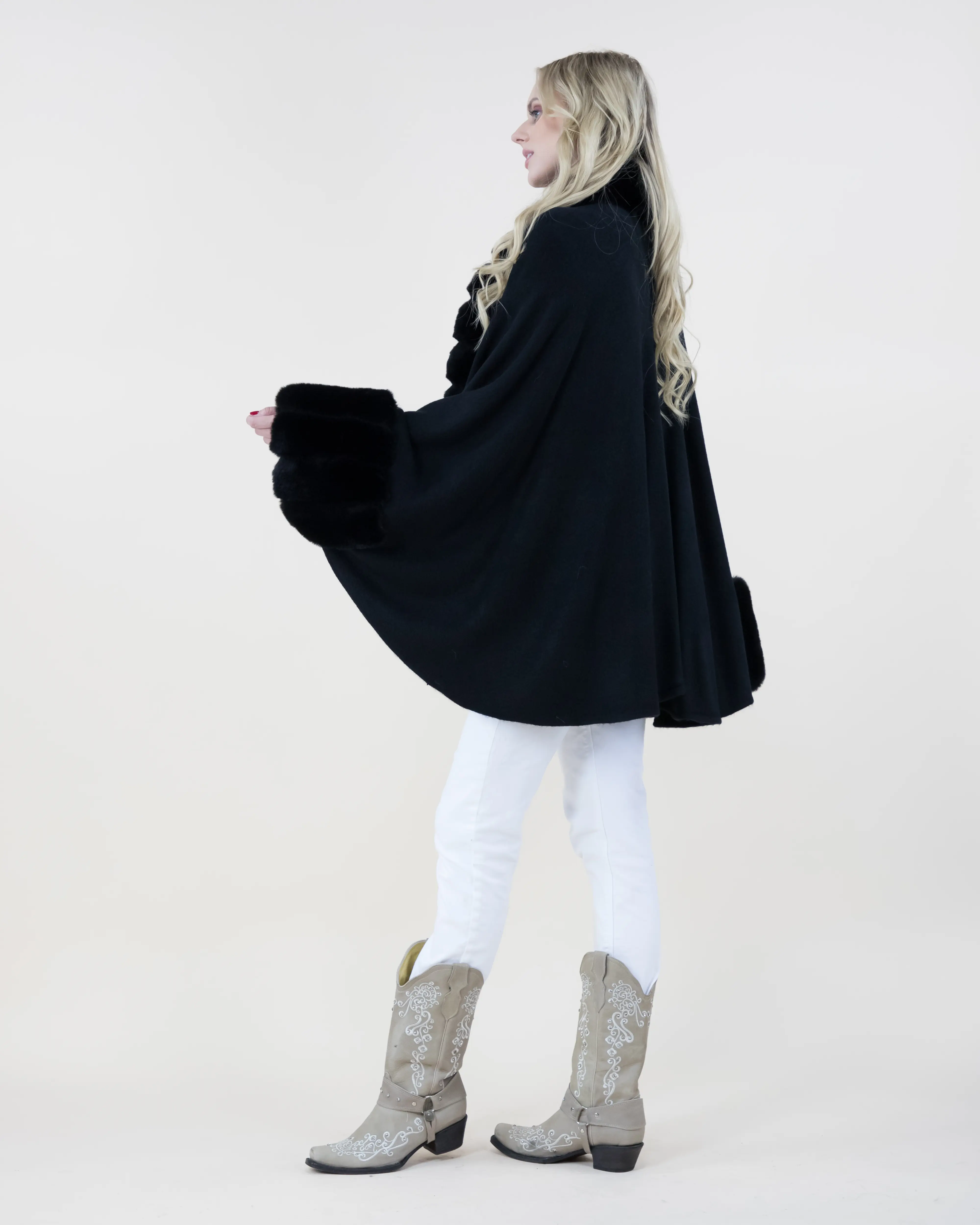 Not good, lent, faux fur all over the sweater, returning item. Could have been a nice Cape.