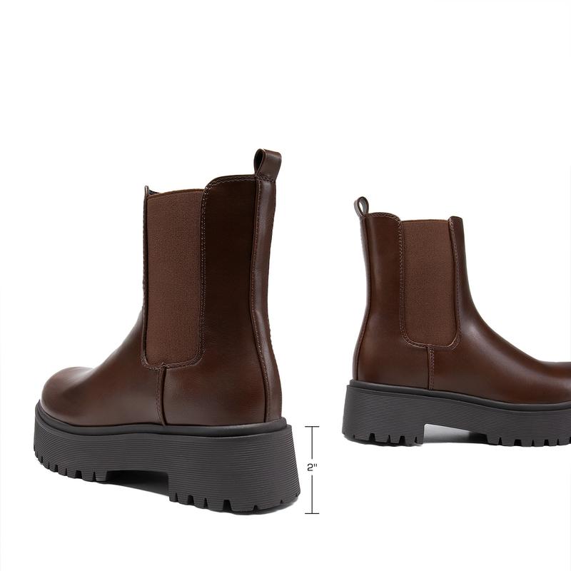 Women's Chelsea Ankle Boots Square Toe Fashion Low Heel Lug Sole Platform Fall Booties Shoes