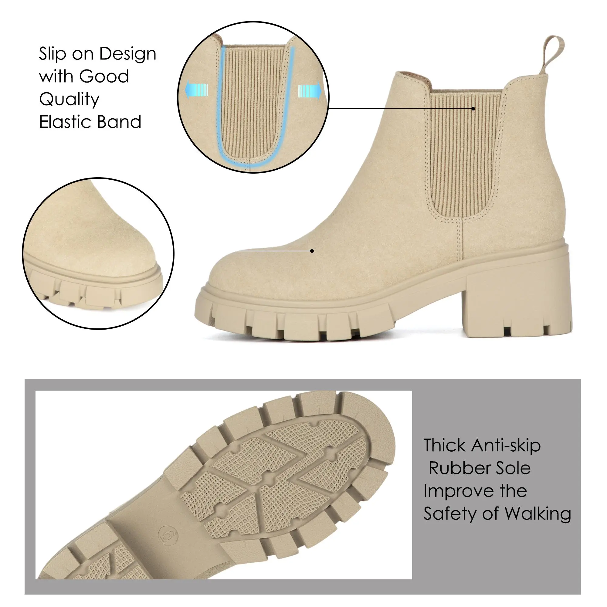 ·Design: This short boot is perfectly designed for steady steps, thick lug sole, strong grip, and good anti-skid performance, improving the safety of walking. Give you just the right amount of stylish and sturdy sensibility.
