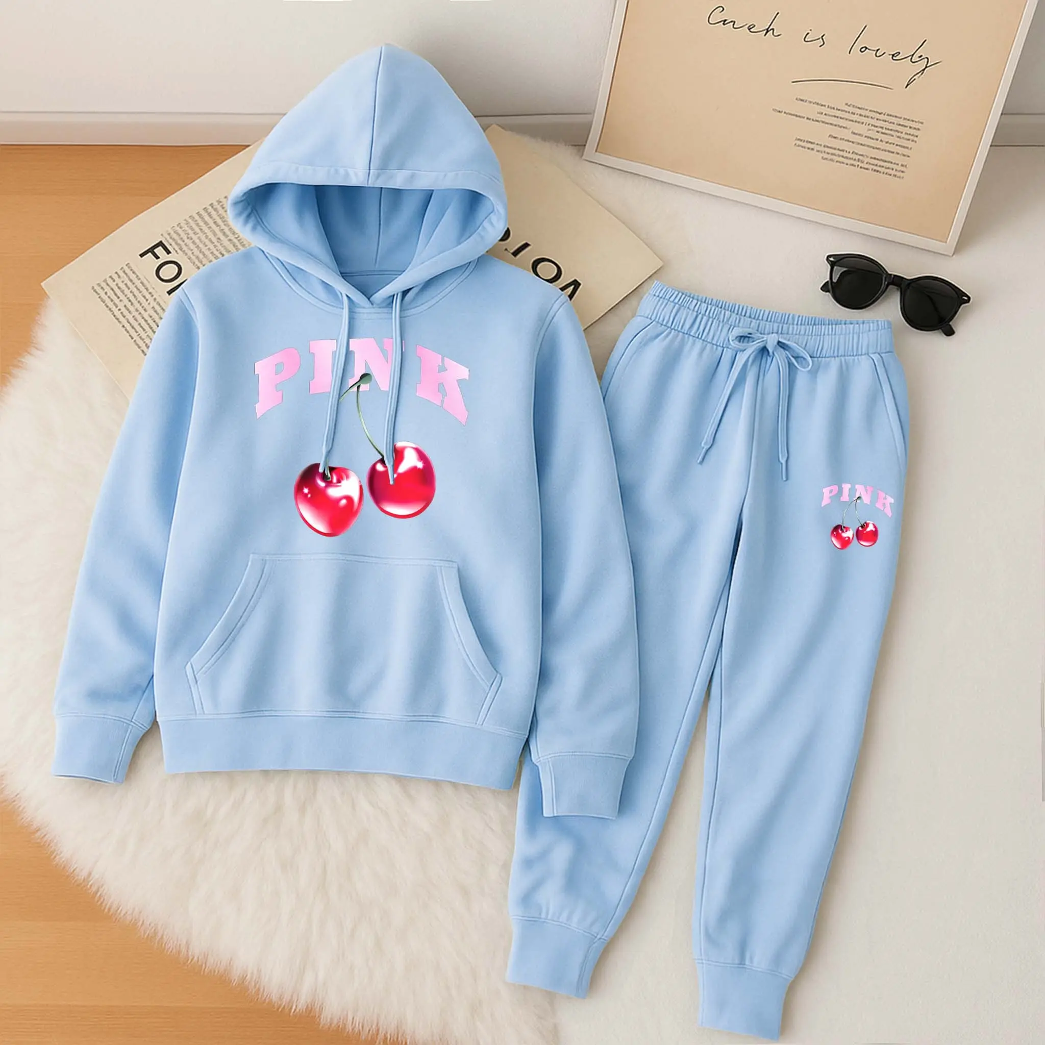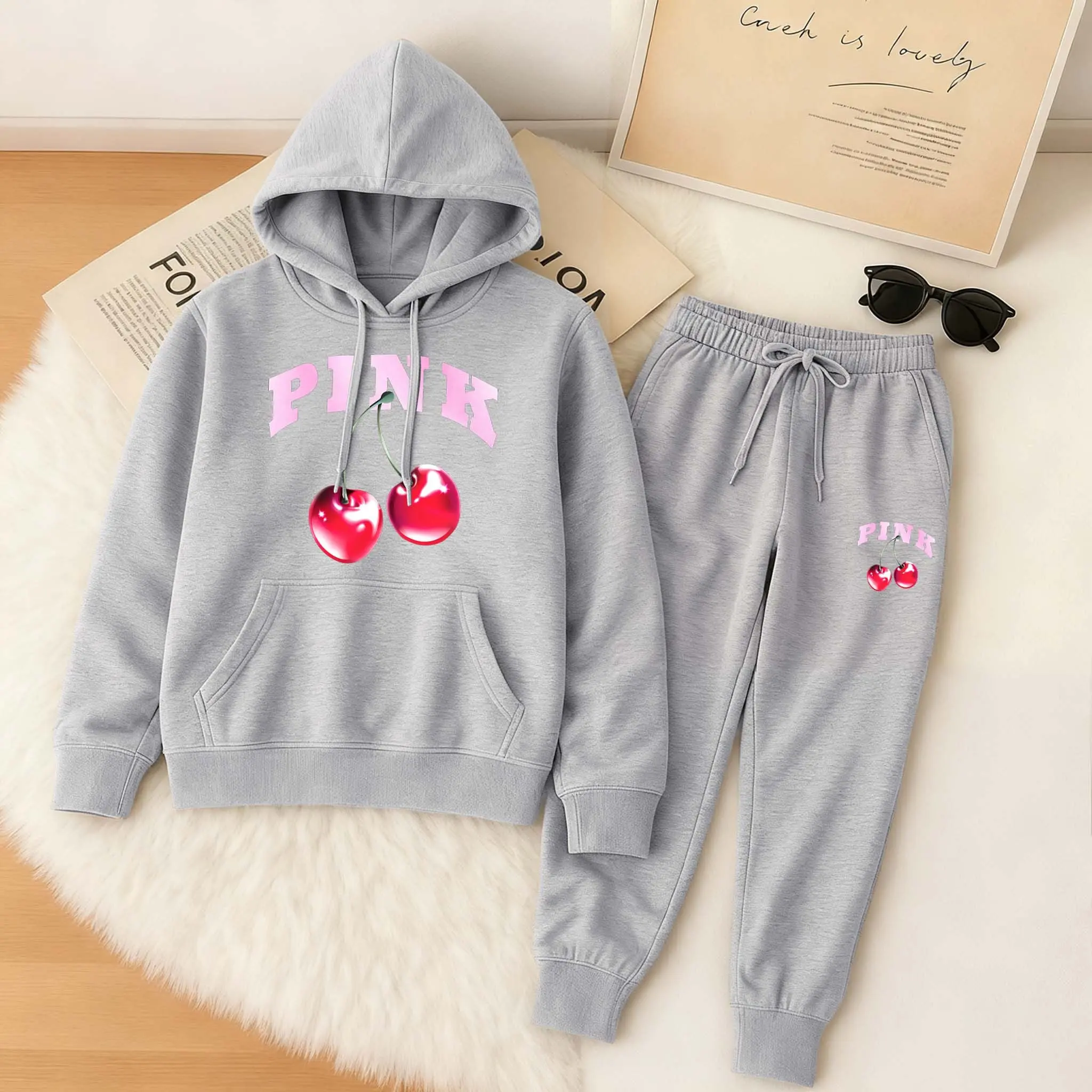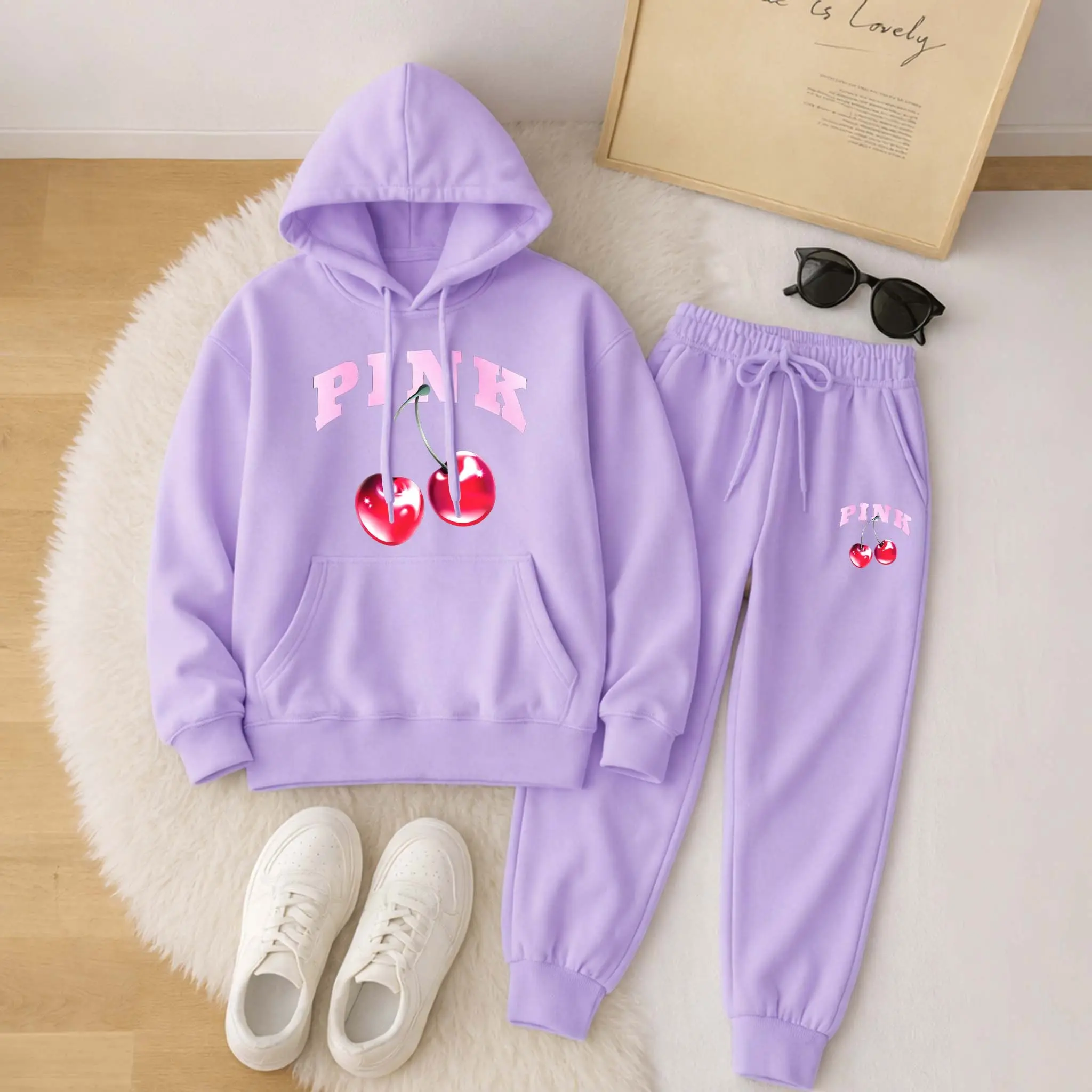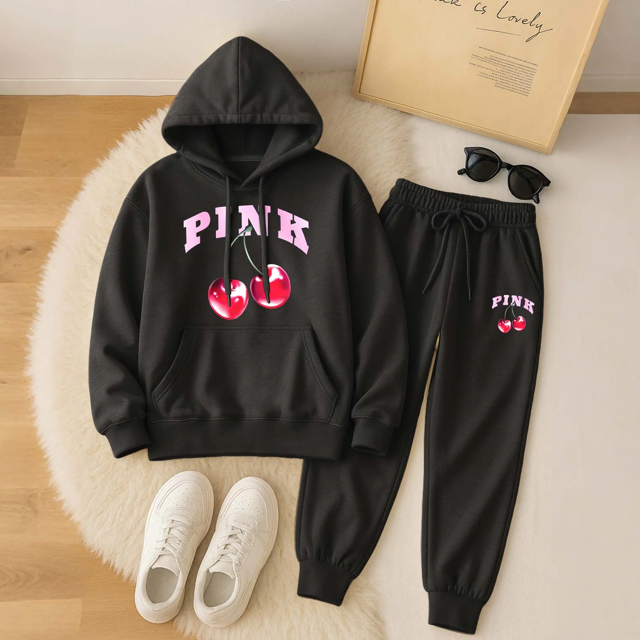Printed Hoodie & Drawstring Sweatpants Set
