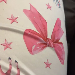 Love the bright and vibrant bows on these. They are super soft and comfy! This is my third pair of them!