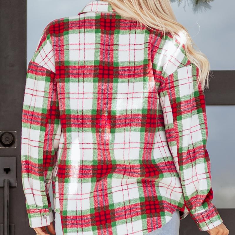 • Casual yet stylish, this plaid shirt jacket is a must-have for your Christmas wardrobe. Its design allows for easy pairing with various outfits. Stay cozy and look chic during the holiday season. Embrace the season with this charming, practical