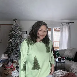 I love this sweater! In all honesty I was afraid that it’d be tacky a not as nice as what was pictured ….. but boy was I wrong!! Great quality, very pretty, washes well. I got so many compliments when I wore it! Very pleased with my purchase.