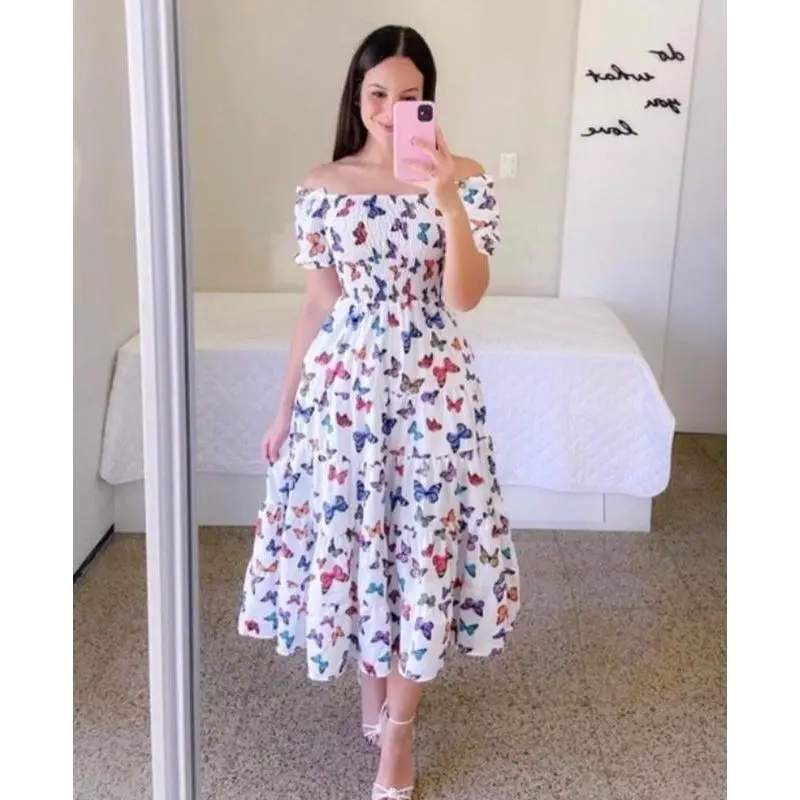 5. Women's clothing Spring and Summer New Fashion Butterfly Dress Artistic French Fresh Print Loose Breathable Women's