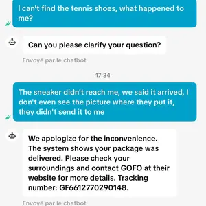 Je n'ai pas trouvé le tennis et nous demandons un bon préavis. J'ai écrit pour te dire que je ne l'ai pas trouvé