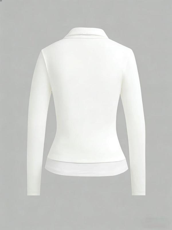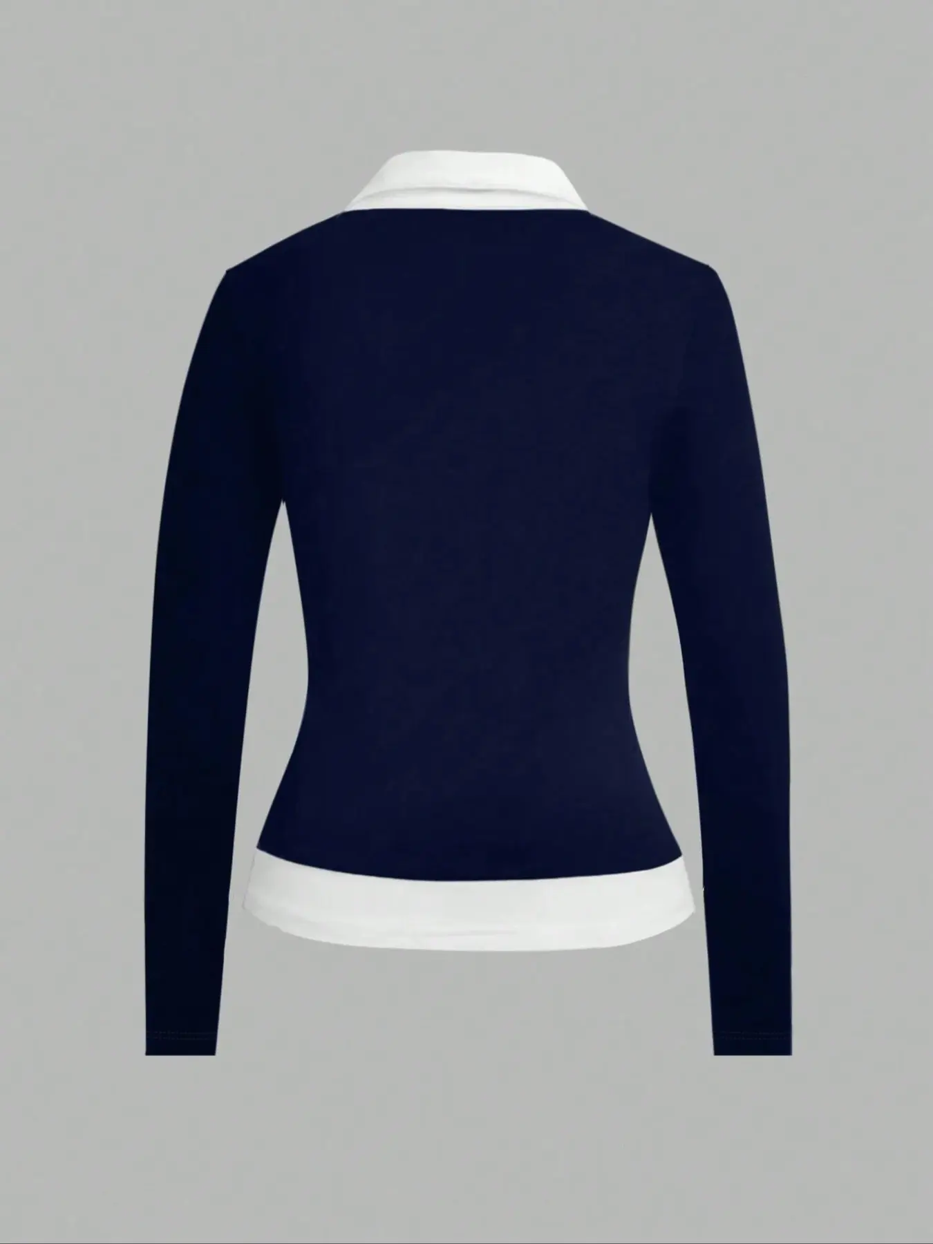 Women's Colorblock patchwork Faux Two-piece Shirt Collar Slim Fit Long Sleeve Top, Simple Comfortable Daily Wear,Versatile Stylish Blouse