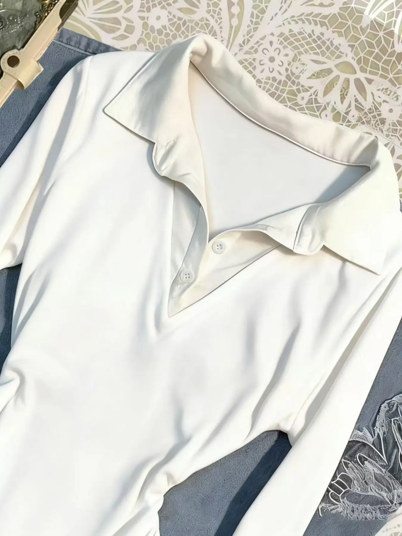 3-piece slim-fit buttoned long-sleeve tops, slim and versatile in one go 👍 #womensfashion  #longsleeve #poloneck #tiktokmademebuyit #tiktokshopholidayhaul