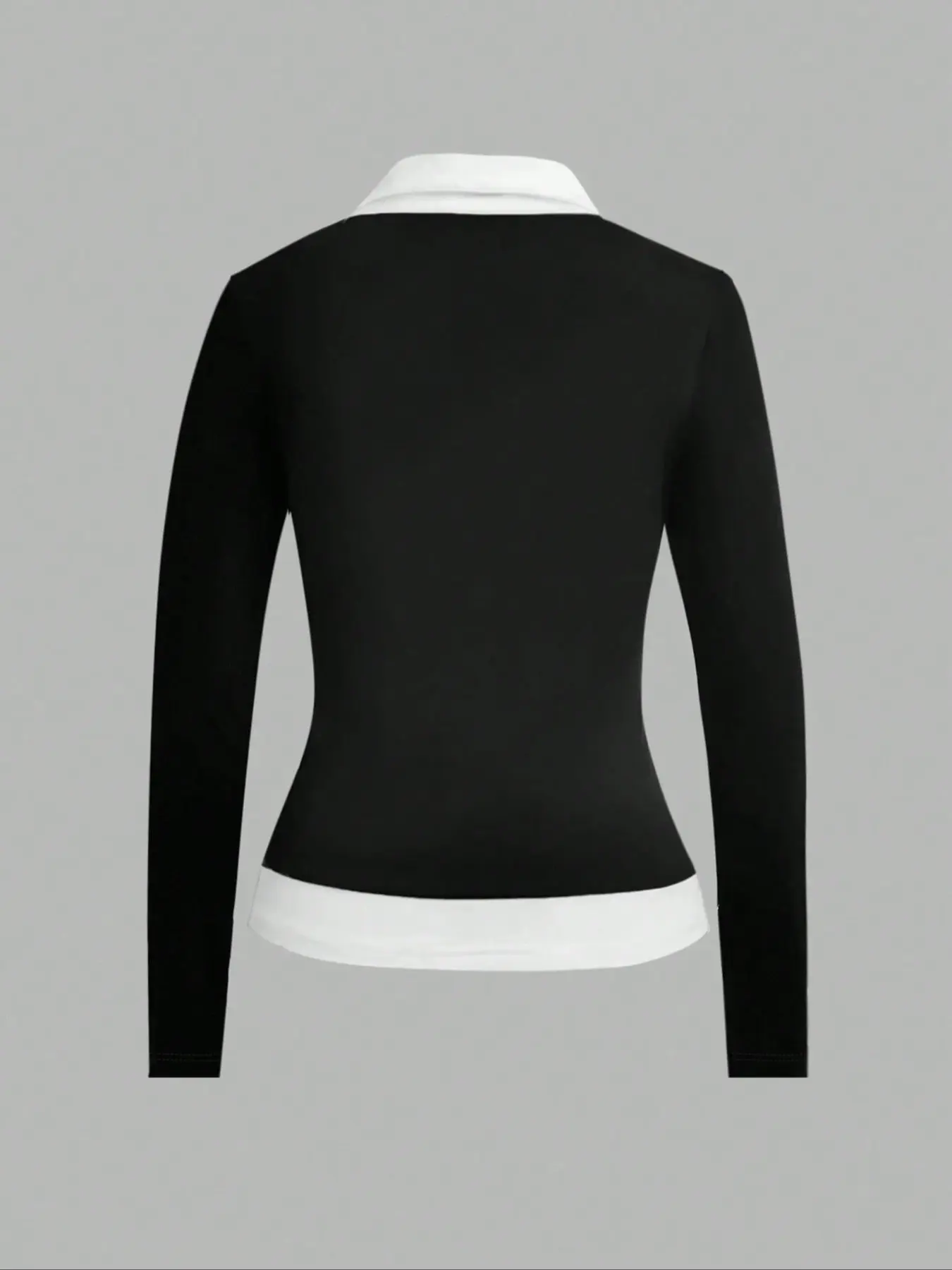 Faux two-piece, real comfort🖤 🤍 Easy style every day.#FauxTwopiece#longsleevetshirt#Colorblockpatchwork#ootd#TikTokShopCreatorPicks