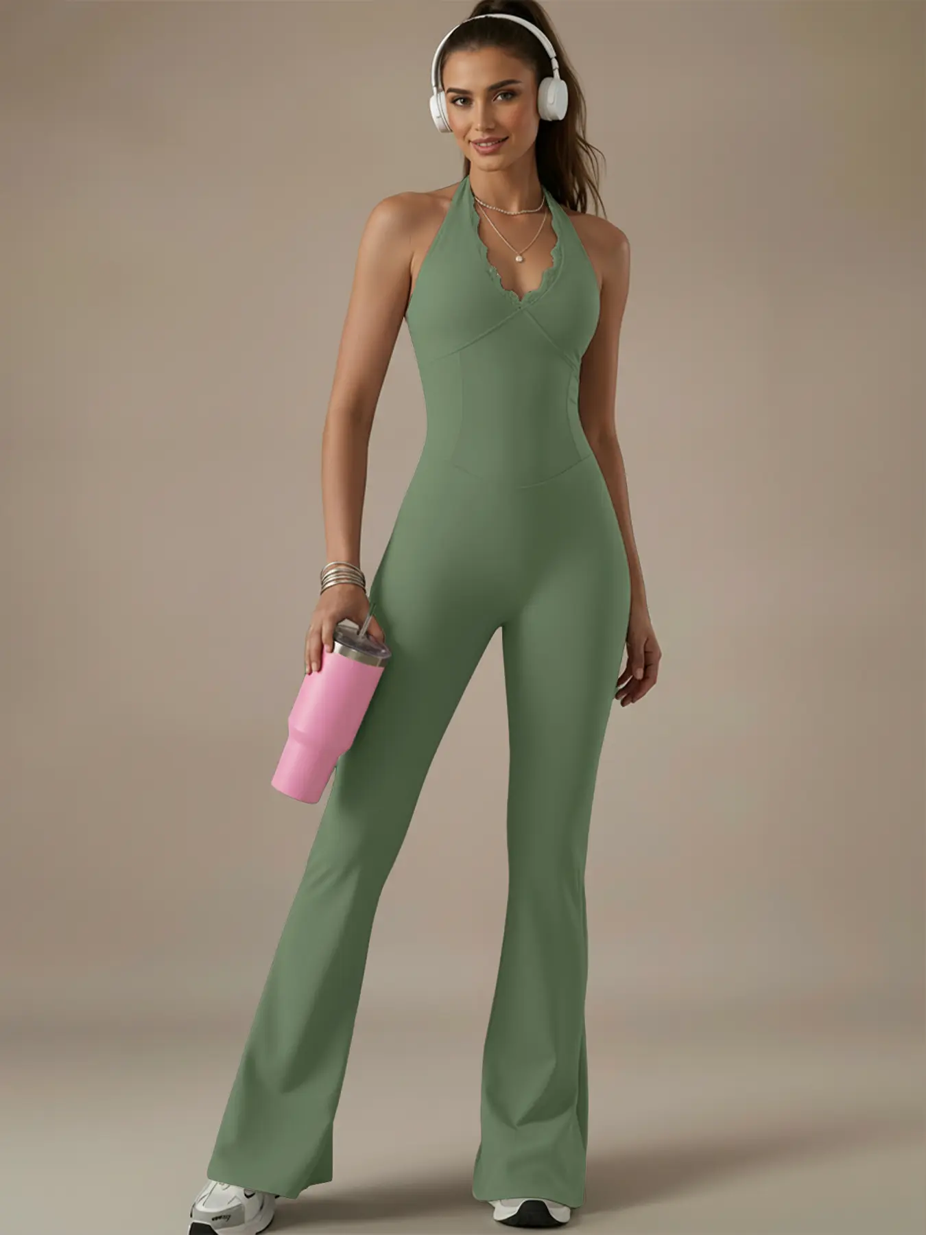 It hugs every curve in all the right places. 🍑 The lace patchwork is everything. #sportsjumpsuit #snatchedfit #bellbottoms #gymoutfit #activewearfashion #spotlightfinds #tiktokshopcreatorpicks #tiktokshopjumpstartsale