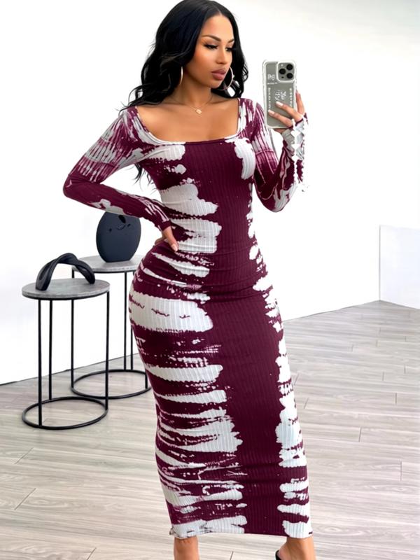 Women's Colorblock Long Dress, Casual Fashion Long Sleeve Dress for Daily Outdoor Wear, Perfect for Spring #dressshopping #womenslongsleeveshirt #fashionnovadress #tiktokshopdress #maternityphotoshootdress #longsleevereddress #summerdresshaul #fashiondresses #squareneckdress #80sdress