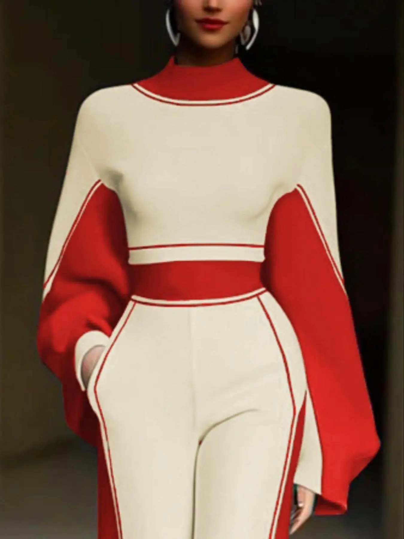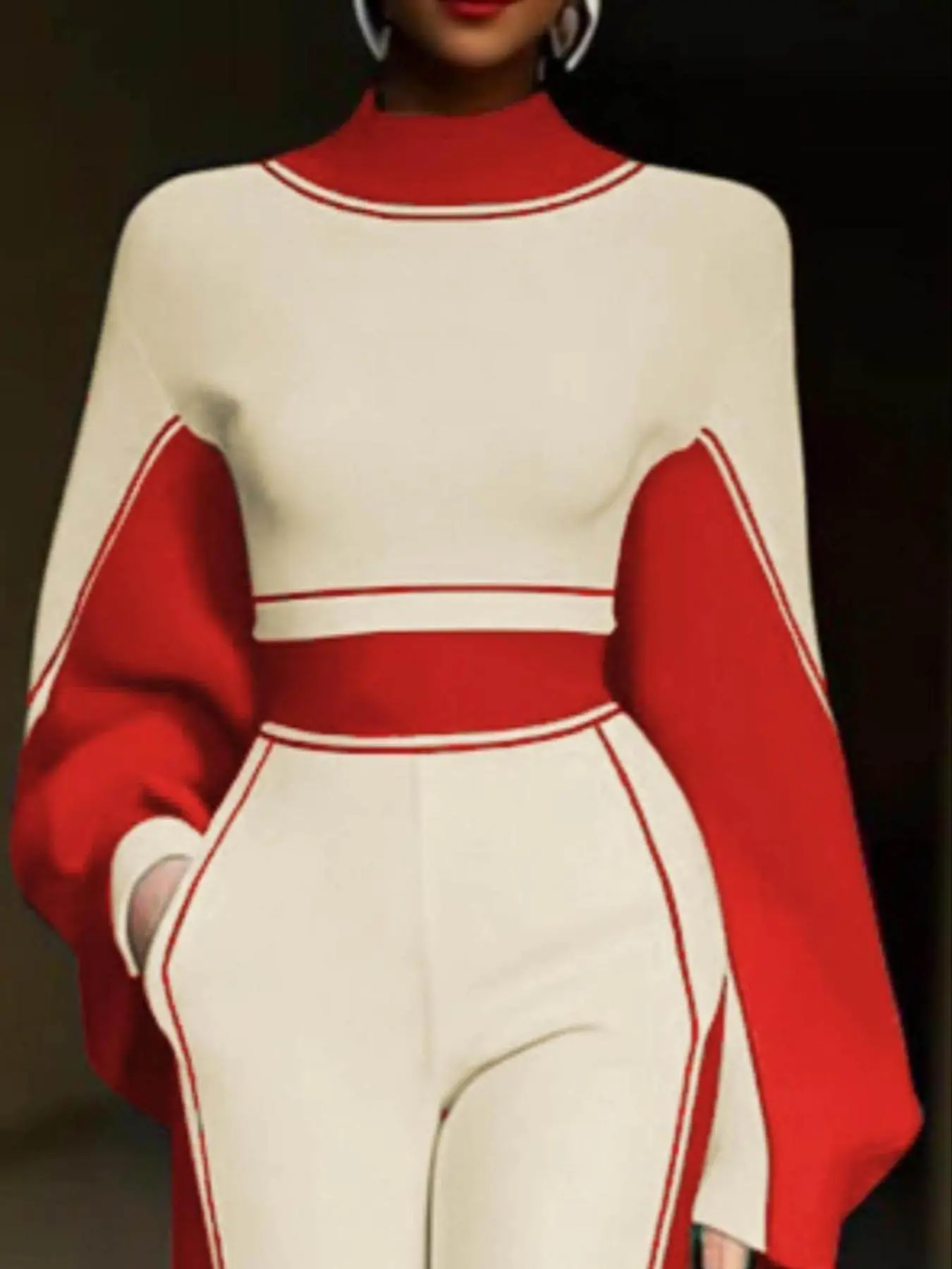 This two piece is absolutely gorgeous!! When I took it out the package my husband responded immediately, āthatās beautifulā! The jacket is cropped and the pants are high waisted so Iām not showing any skin šš½. This is a fall winter and spring outfit. Worth every penny šš