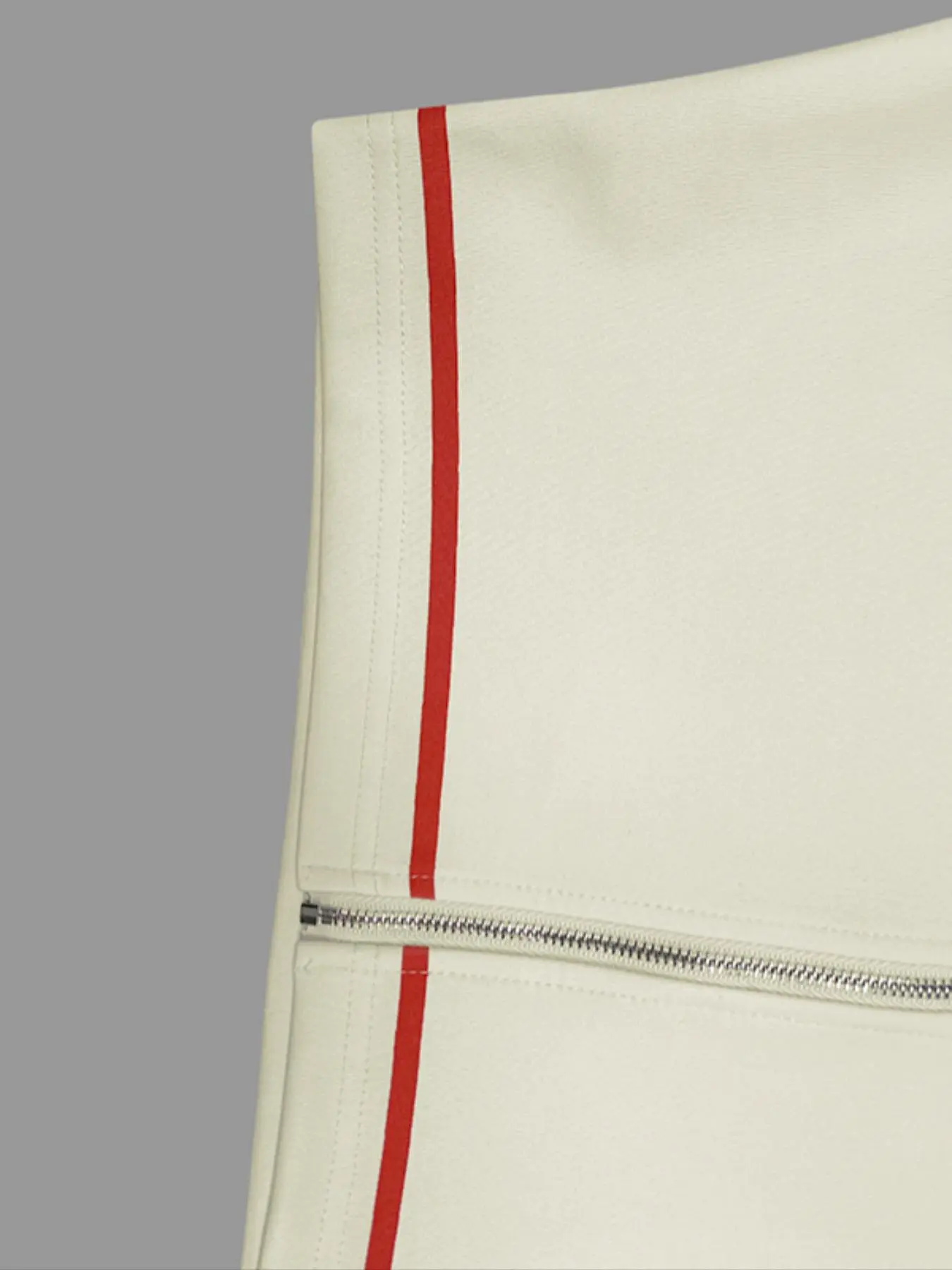 Top is short but pants are high. The zipper goes in the back