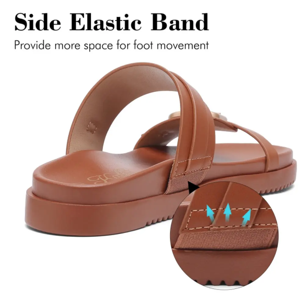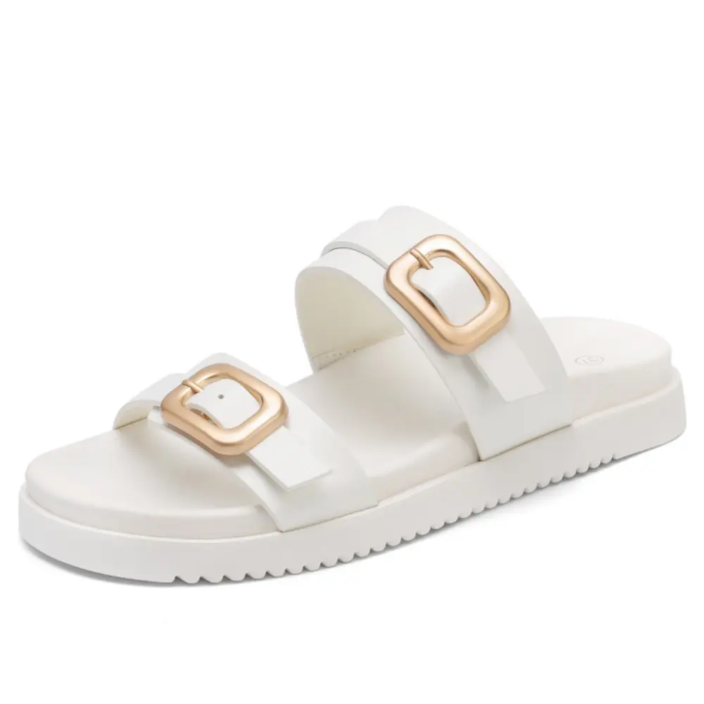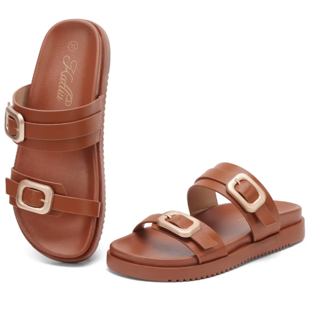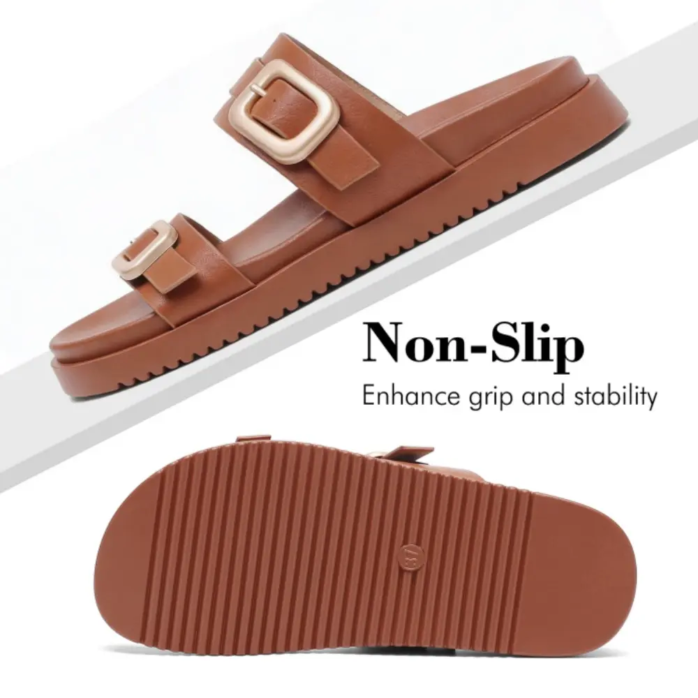 Women's Comfort Sandals – Dual Adjustable Buckle Slide, Arch Support, Breathable Summer Footwear for Daily & Outdoor Wear