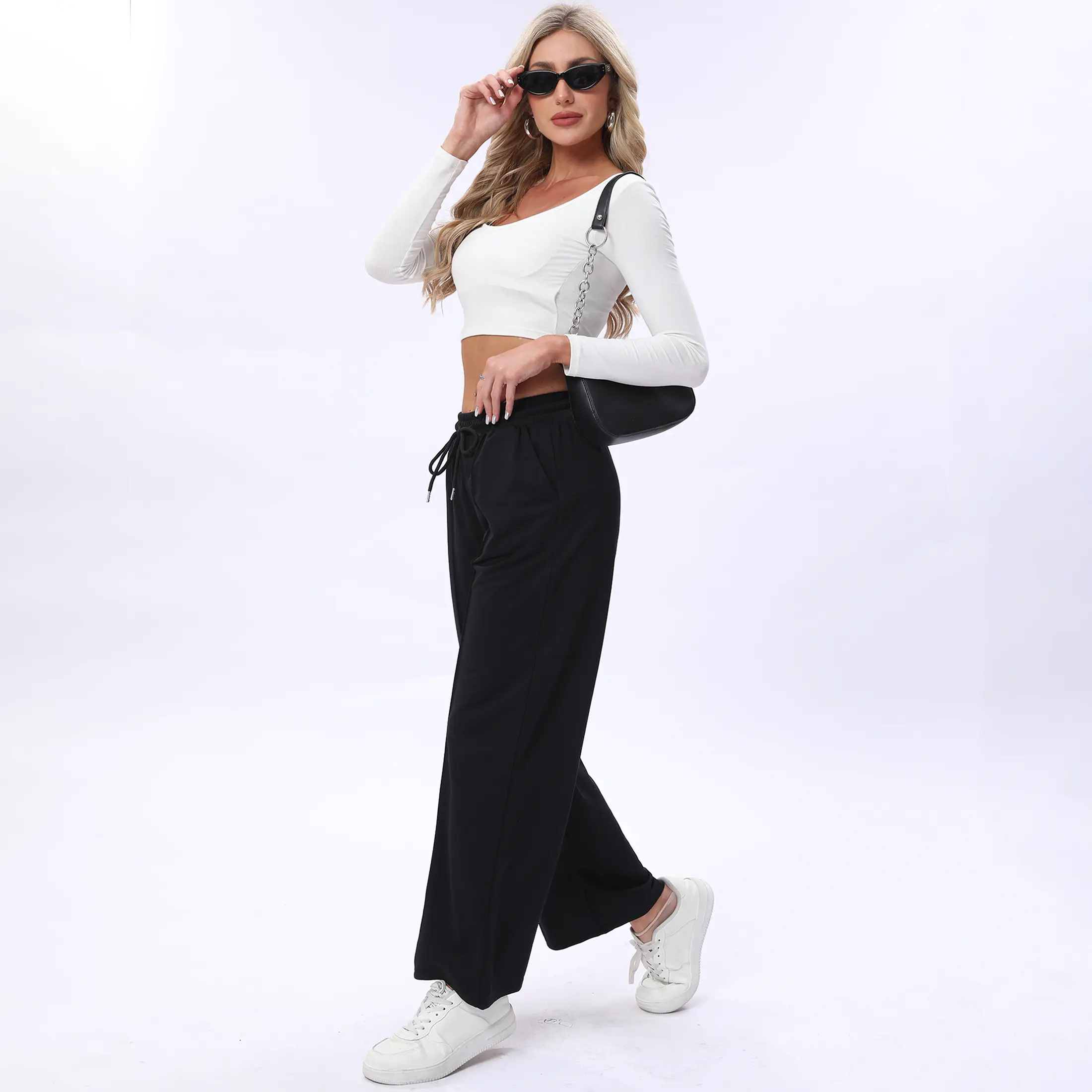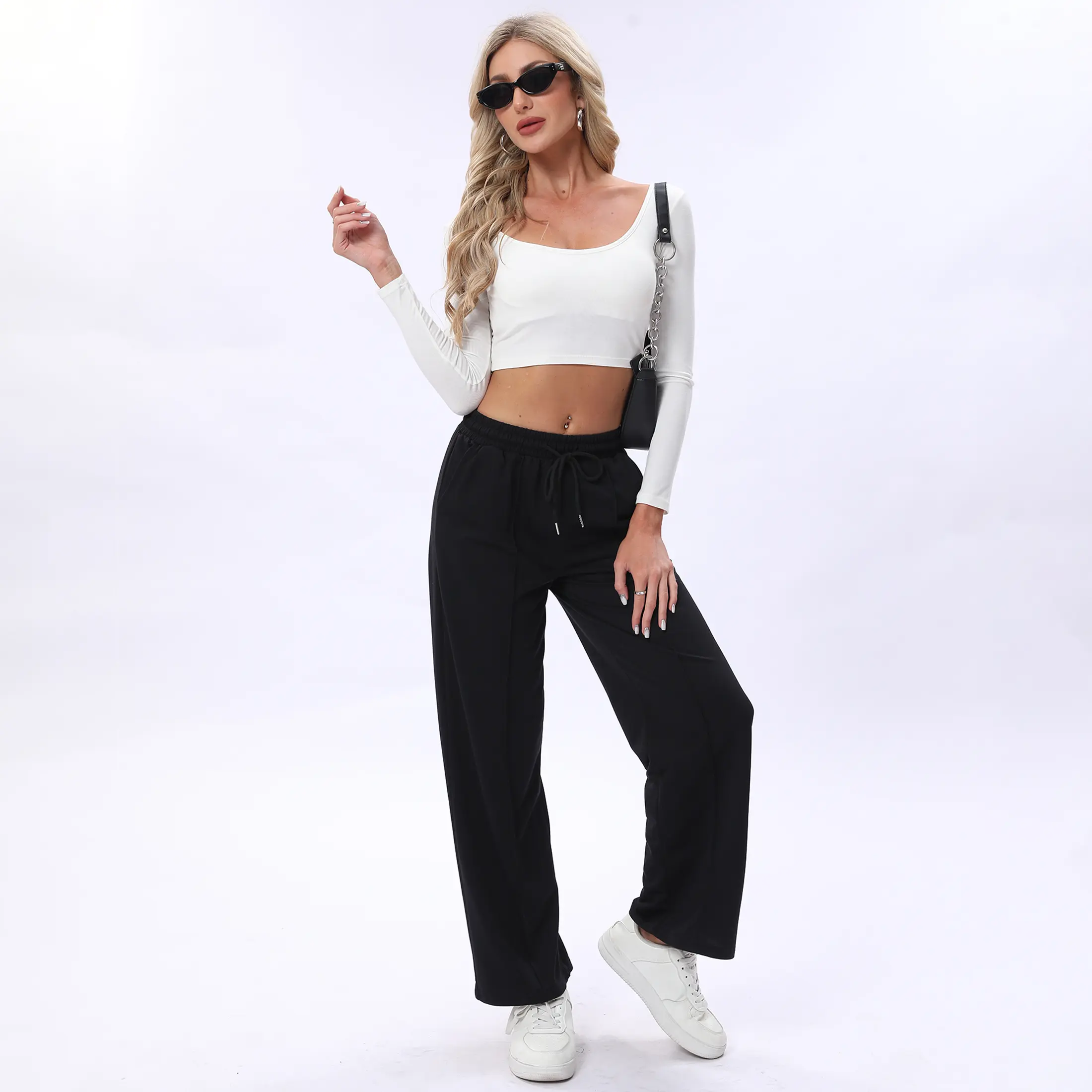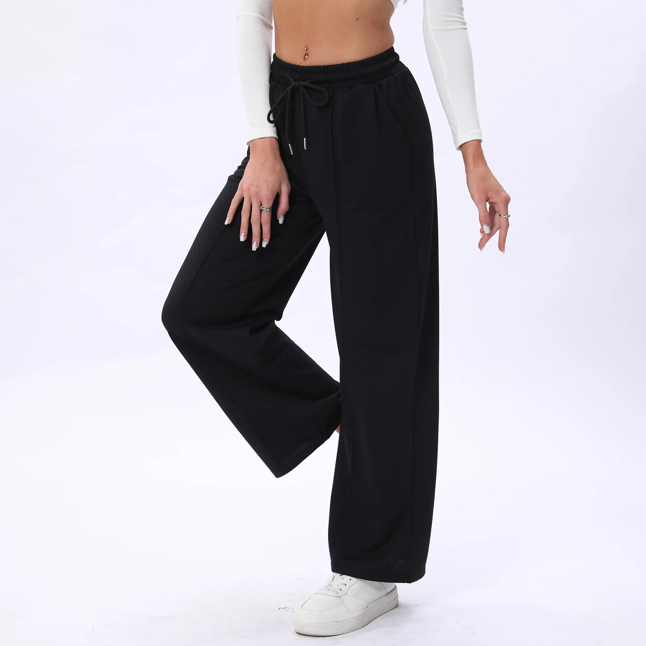 Wide leg design: The wide leg design is not only fashionable and comfortable, but also enhances the leg shape, making every step of your body appear confident and elegant