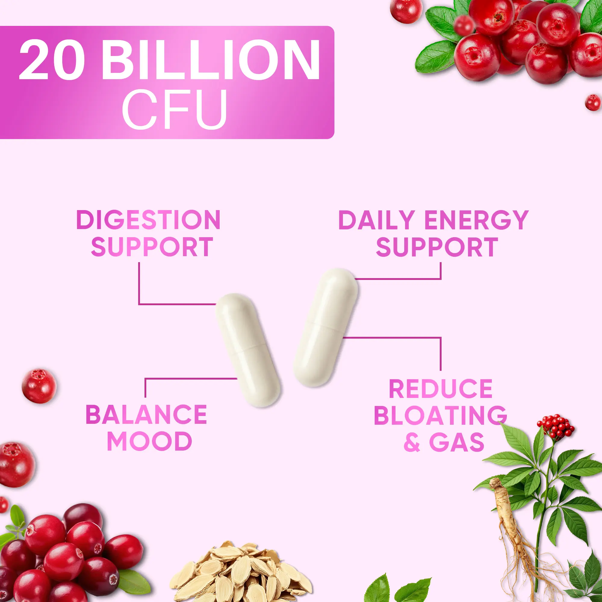 DrBioCare Women’s Probiotic + Herbal Balance Complex – 7 Strains Probiotics (20 Billion CFU) – Gut Health, Energy & Digestive Support – With Ashwagandha, Cranberry & Mulberry Leaf – Non-GMO, Gluten-Free, Soy-Free, Dairy-Free