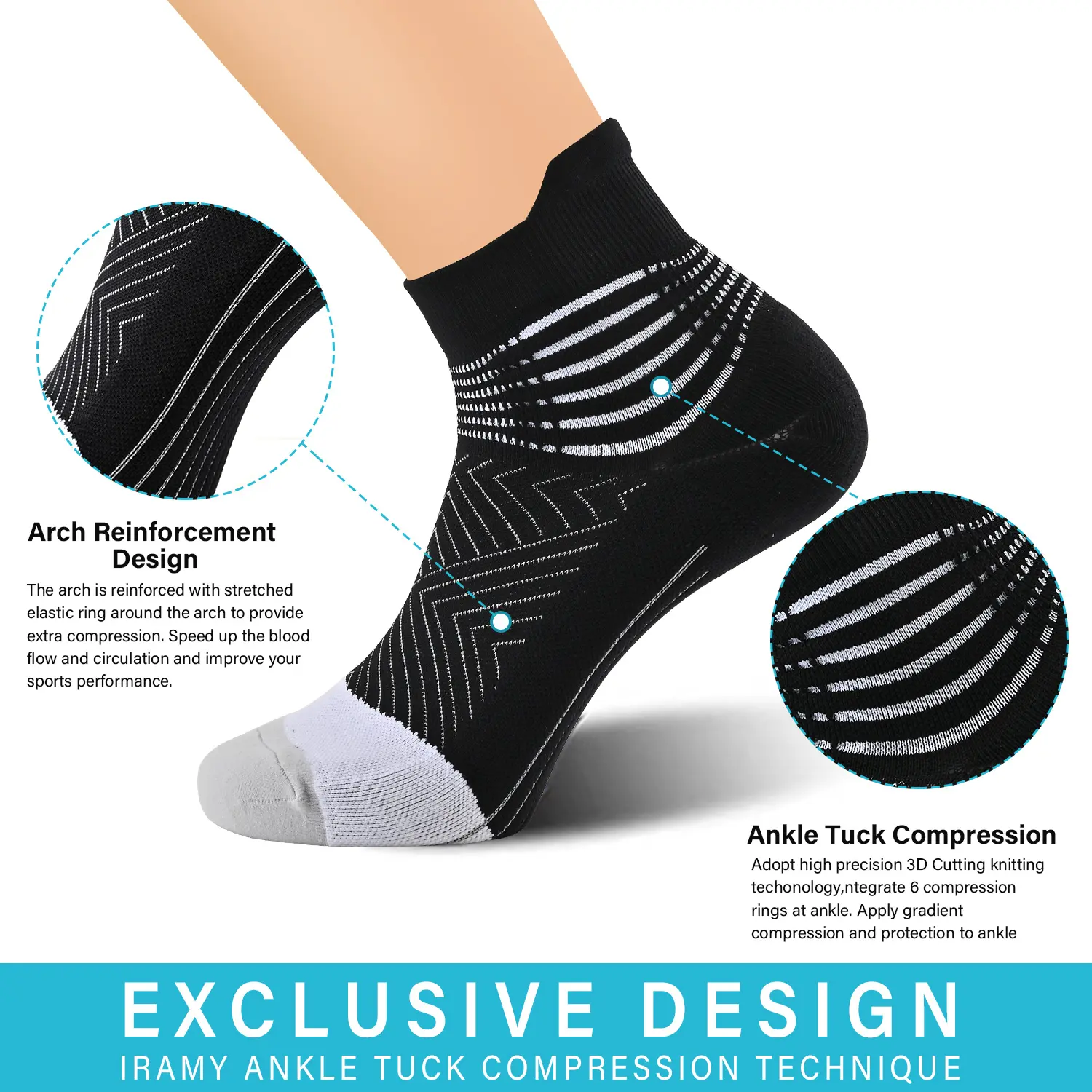 ·[Ankle Compression Support]IRAMY Compression Socks For Women offer premium ankle and arch support for enhanced athletic performance and reduced pain associated with various ailments. Featuring high-end air knitting technology and 6 compression rings at the ankle, our socks provide ultimate protection and comfortable full range compression. Even pressure around the ankle joint reduces muscle fatigue and swelling from plantar fasciitis.