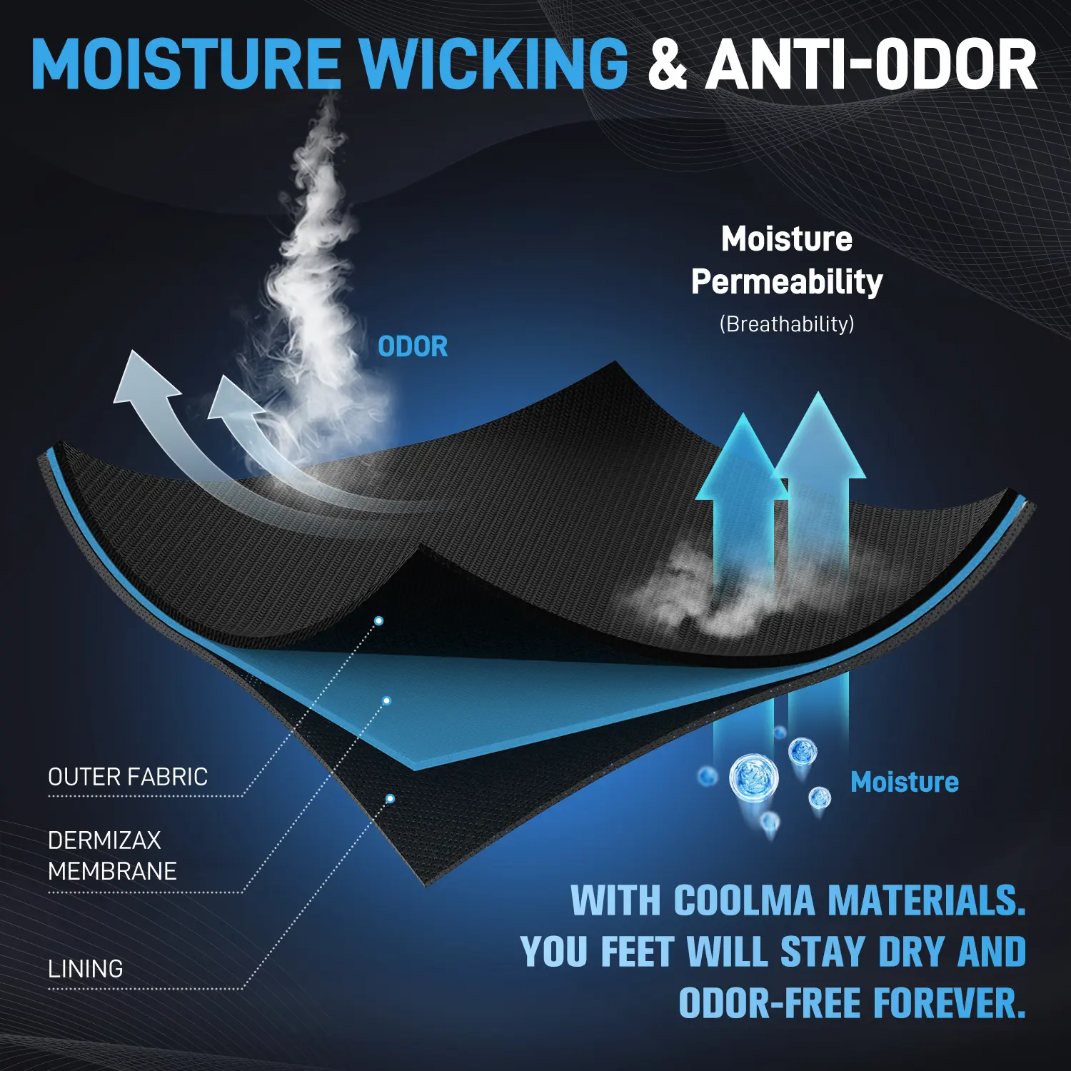 ·Coolmax material with nylon mesh ventilation provides quick moisture-wicking and sweat release, reducing heat and sweat, keeping your feet fresh, dry, and breathable all day. Plus, the odor-free feature eliminates bad smells caused by long-time wear or intense activity. Reinforced heel and toe areas withstand rigorous workouts and multiple washing.
