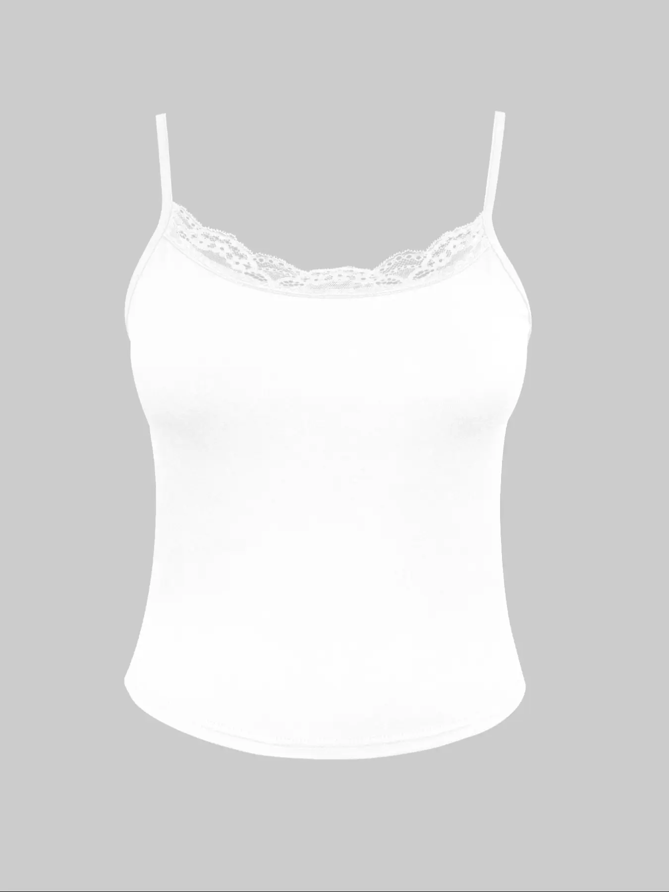 Women's Sweet Lace Trim Sleeveless Short Top, Fitted, Casual Plain Design, Perfect for Daily Wear & Stylish, Comfortable Fit