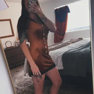 It isn’t as brown as the picture it is more of a dark rust orange but overall it’s still a really cute dress. If you’re expecting high quality you’ll be disappointed but it’s a nice and cute dress for the low price that I paid. I’m usually a small to but I ordered a medium to b safe & it fits nice
