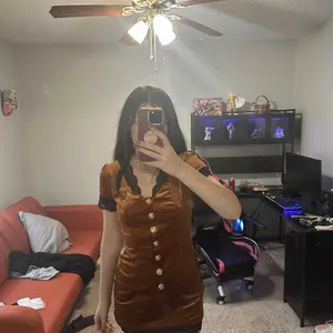 The dress is cheap and thin the material is also something close to a Halloween costume. The buttons are cheap plastic and tacky. The dress also came in a lighter brown then shown in the picture