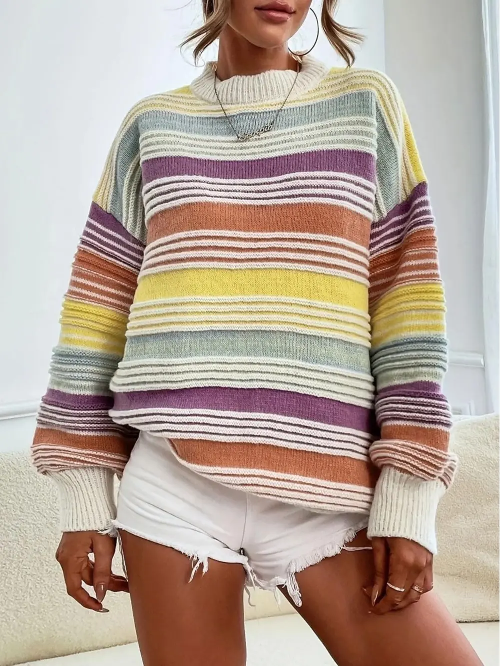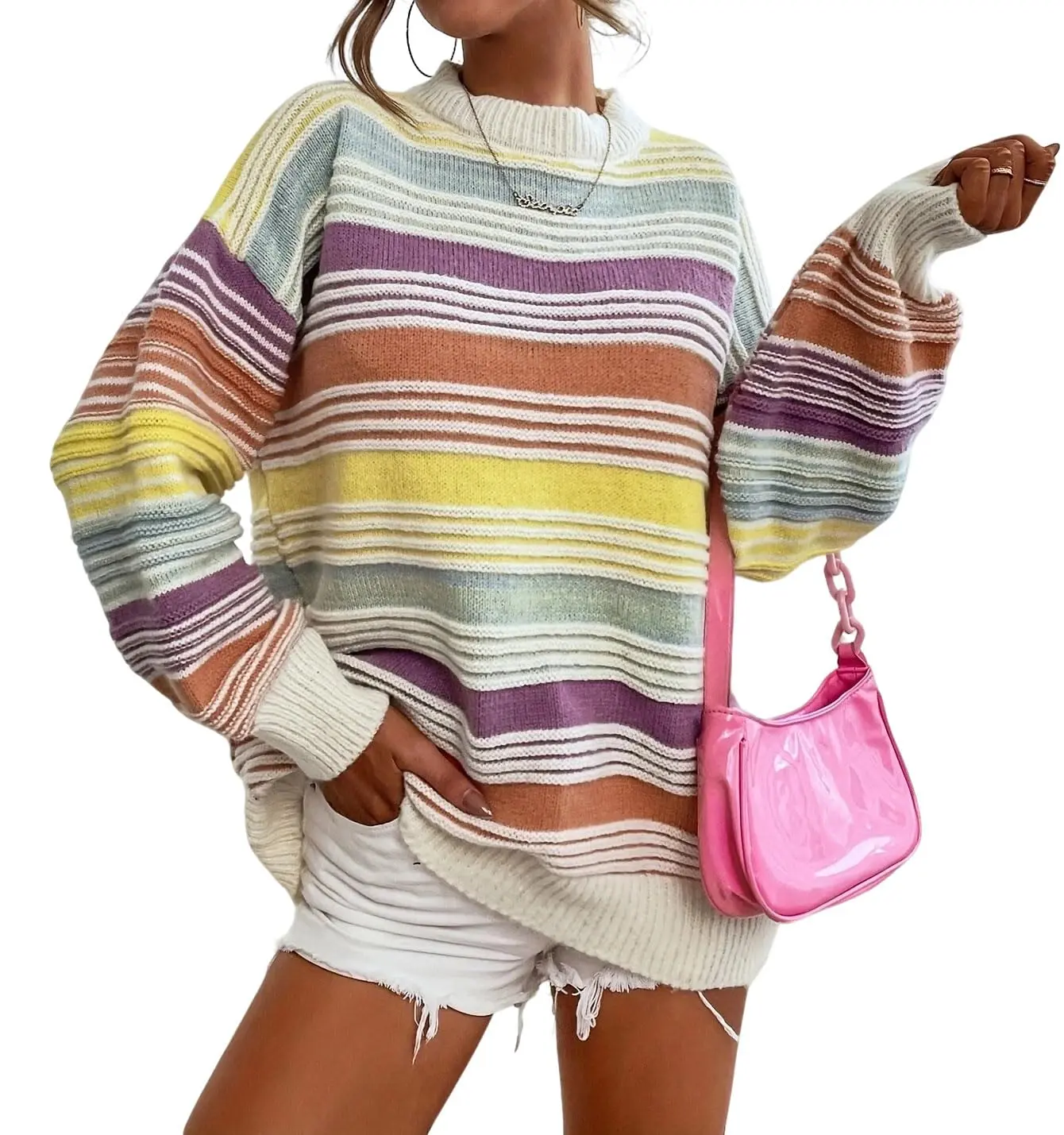 Such cute, soft, and comfy colorful sweater!! It’s not too thick or hot but also not super thin. It doesnt feel or look cheap at all. I’m always hesitant to buy clothes off TikTok but this one was a winner.
