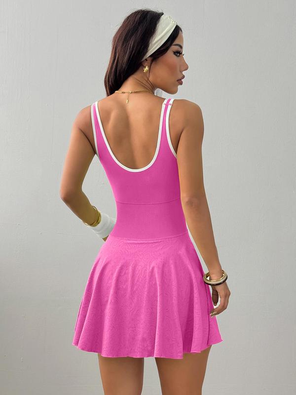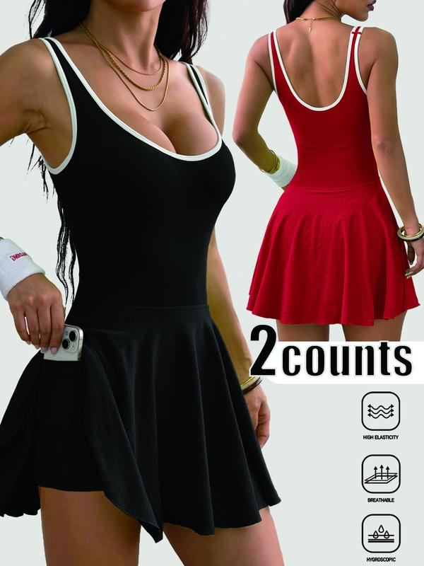 Cute, comfortable tennis Dress with shorts underneath and pockets. I love that it isn't as short as some of the others I have tried. Also has removable breast pads.