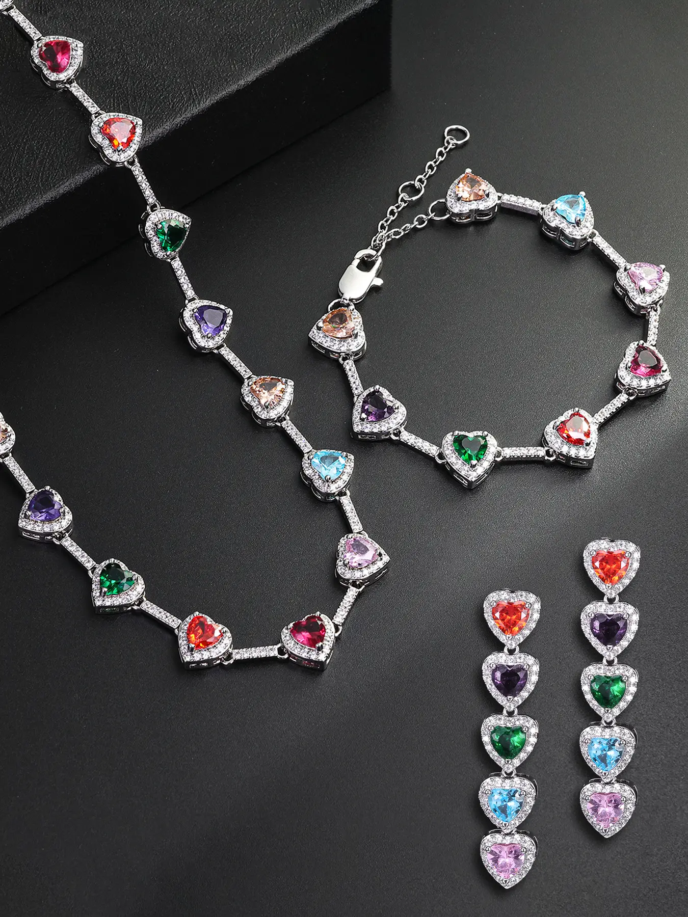 【Colorful Appeal】: This jewelry set features a vibrant heart design, adding a playful touch to any outfit.