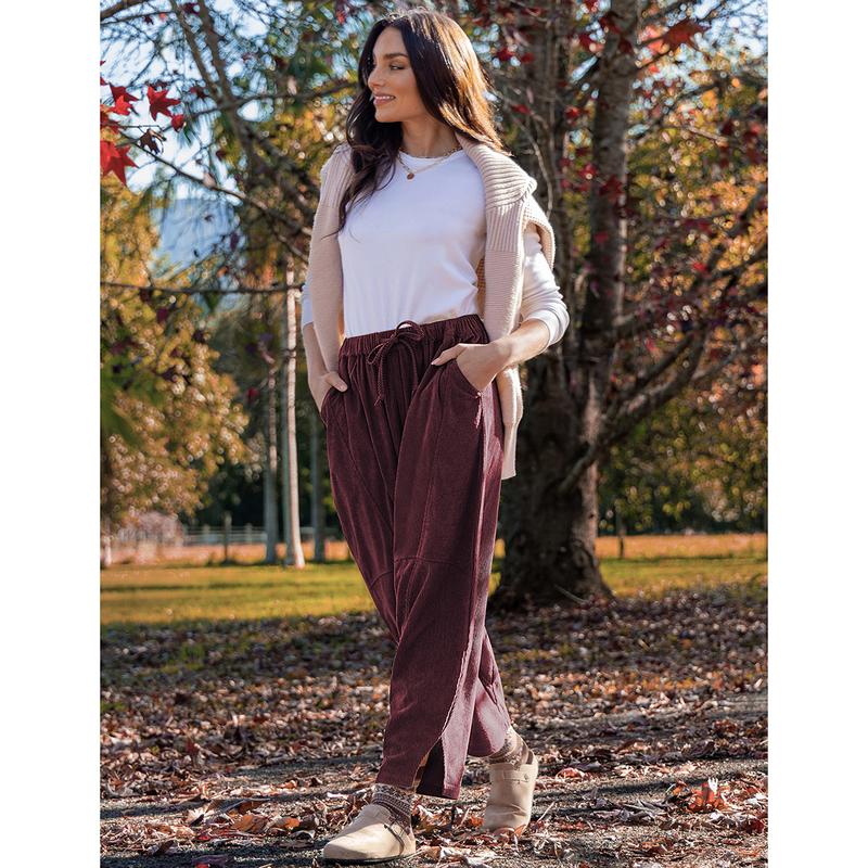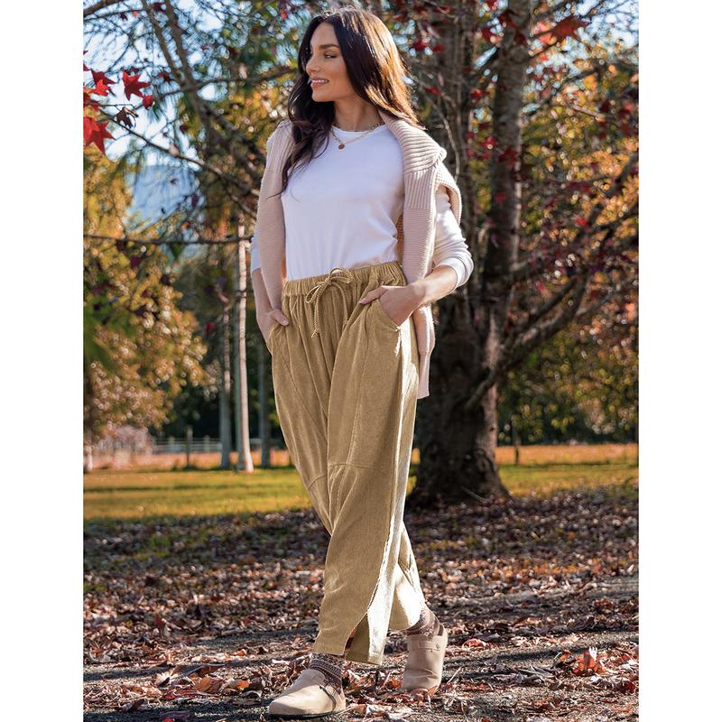 These harem pants are skin-friendly and comfortable for all-day wear. Made of soft, breathable corduroy material, perfect for fall and winter.
