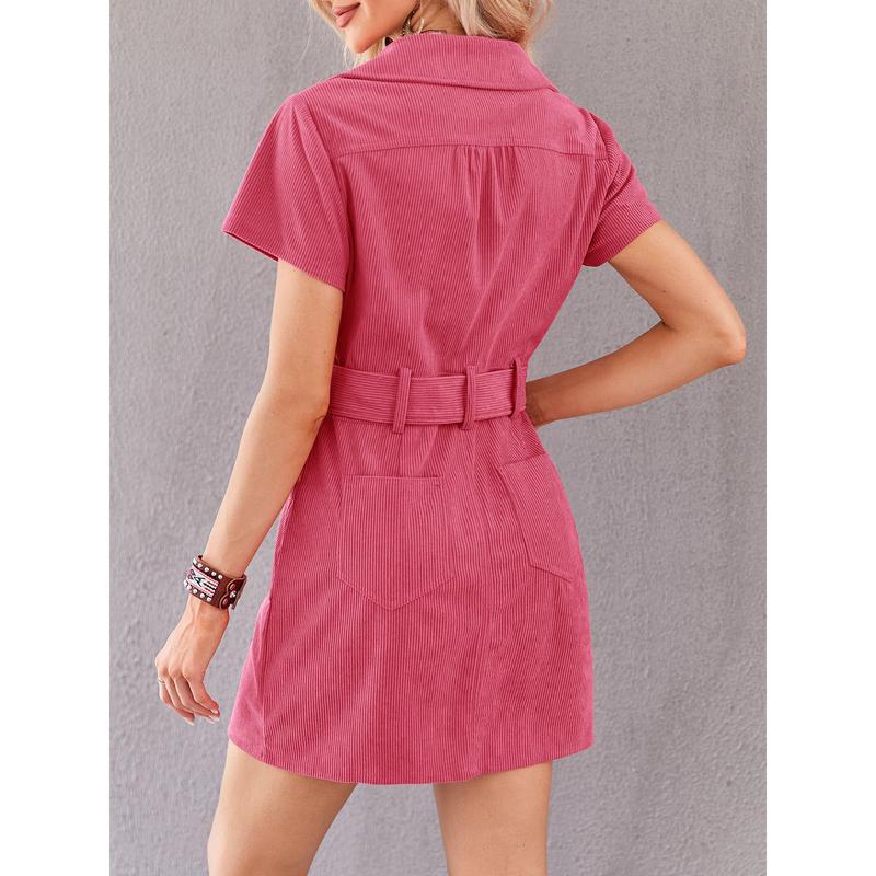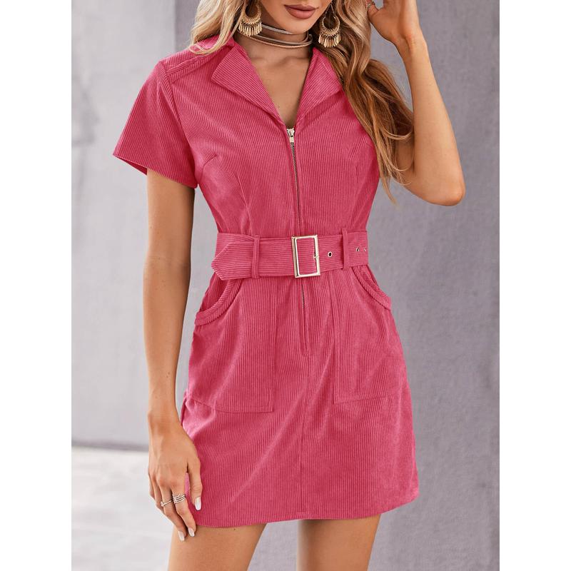 Fashionable Design: This women's corduroy mini dress features a trendy short sleeve, lapel zip-up front, and belted cowgirl style, making it a perfect choice for casual outings or special occasions.