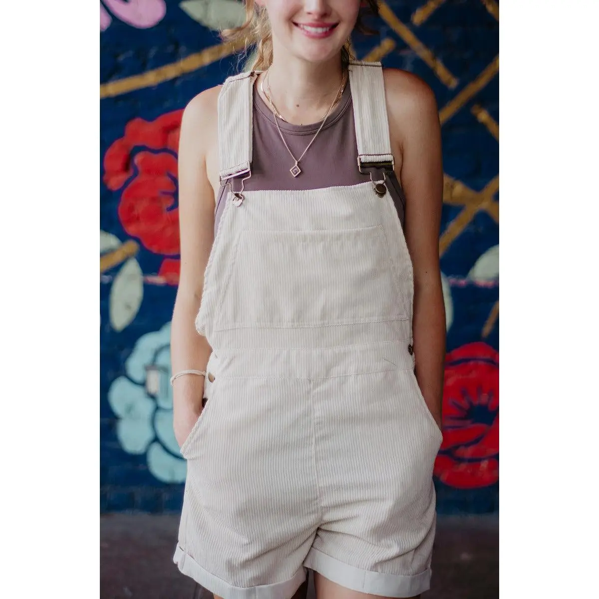 Okay stop those are so cute. Check out our selection of corduroy overalls! Our corduroy overalls are available in a variety of colors, making them perfect for spring or fall. They're also equipped with side pockets and a front pocket, so you can keep your essentials close at hand.