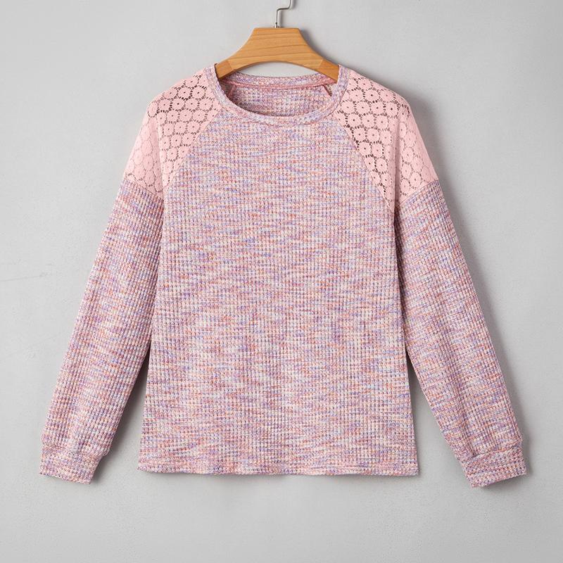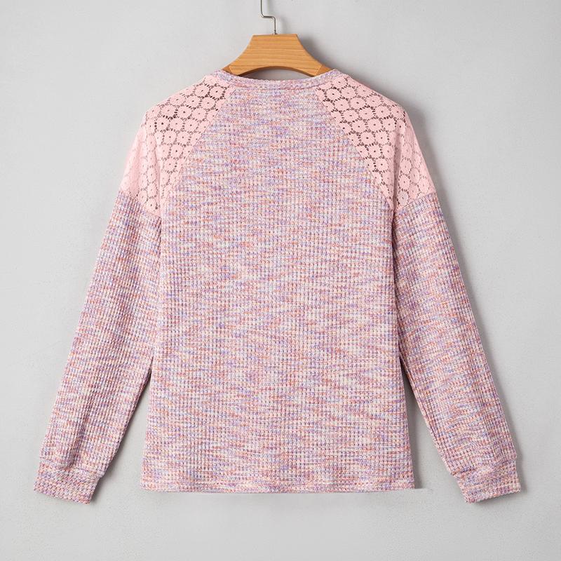 Waffle-knit body paired with romantic lace trim creates a cottagecore aesthetic. The intricate lace adds a touch of femininity, while the waffle texture provides a unique texture experience. This design is both stylish and comfortable, suitable for various occasions.