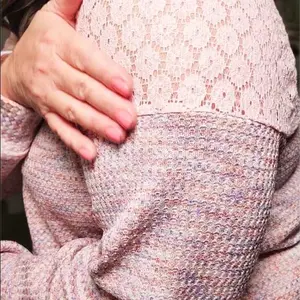 The relaxed pullover cut skims curves, enhancing your silhouette. The sleeve lace adds a delicate feminine touch. This design is perfect for those who prefer a comfortable yet stylish look, suitable for everyday wear.
