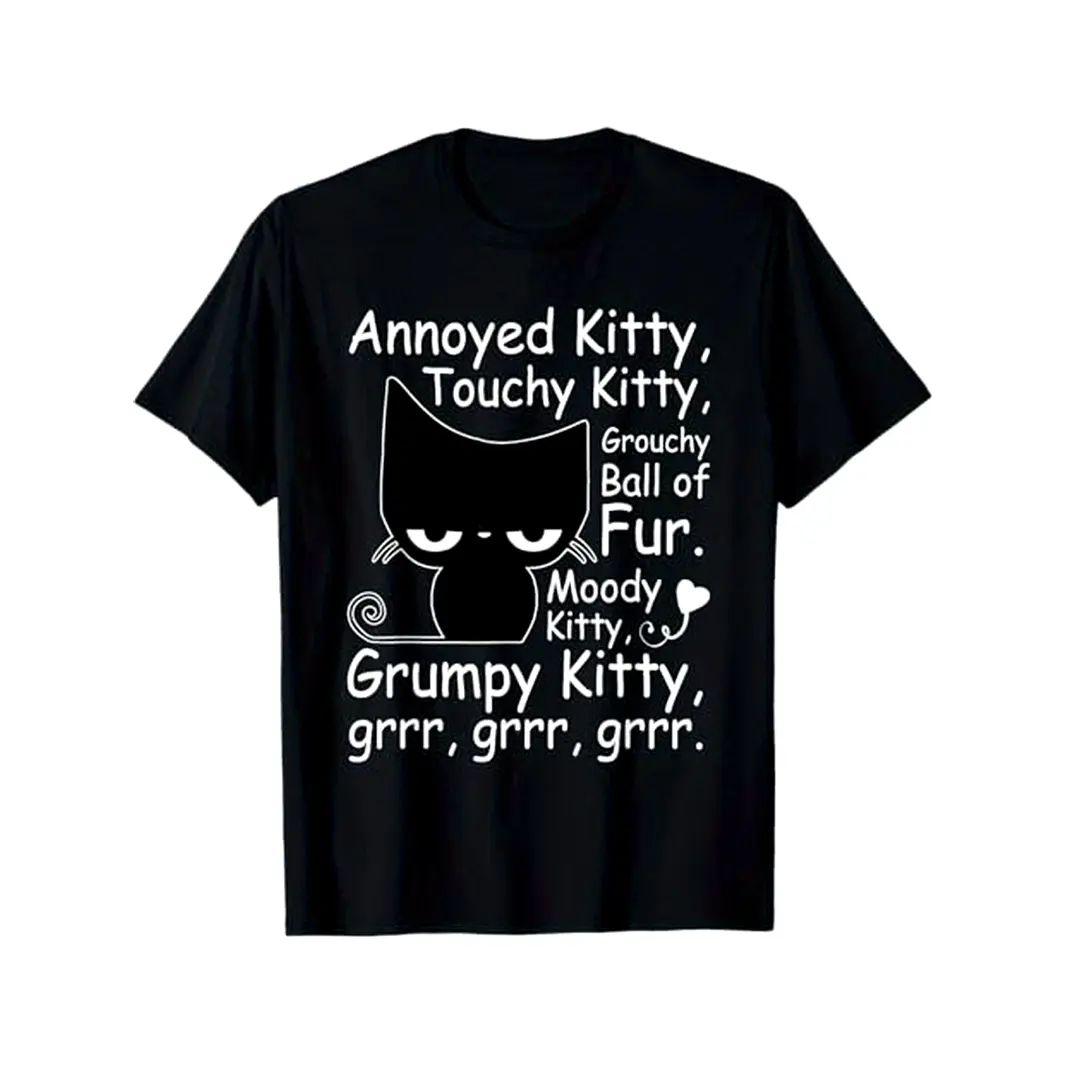 Womens Cotton Short Sleeve Graphic Tee Funny Grumpy Kitty Cat Shirt Cute Cartoon Cat Lover Top Casual Streetwear Soft Breathable Everyday Outfit