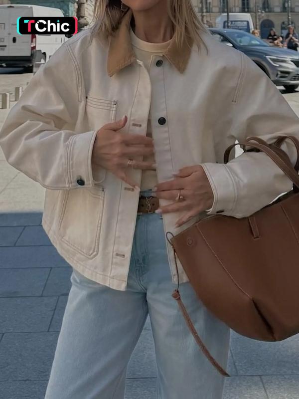 【Distinctive Collar】: Features a contrasting collar, adding a unique flair to this otherwise minimalist jacket, enhancing visual interest.